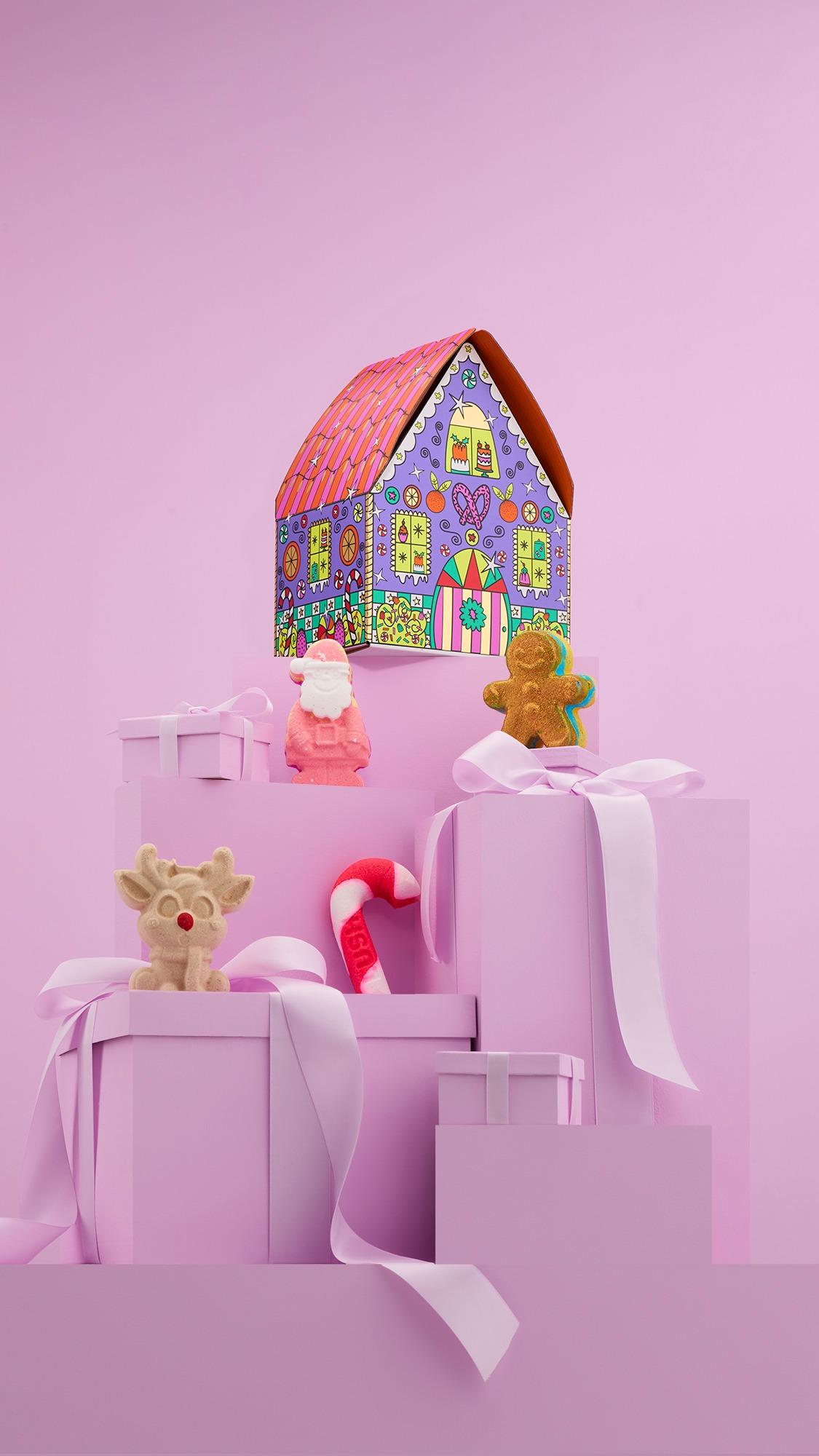 所謂「此心安處是吾鄉」,4款充滿節日魔法的浸浴產品正是心之所向,築起一個個有趣淘氣的驚喜,當然少不了隨禮盒附送的貼紙。待所有浸浴夥伴搬進浴缸後,這間薑餅屋便可用來收藏心愛物品!