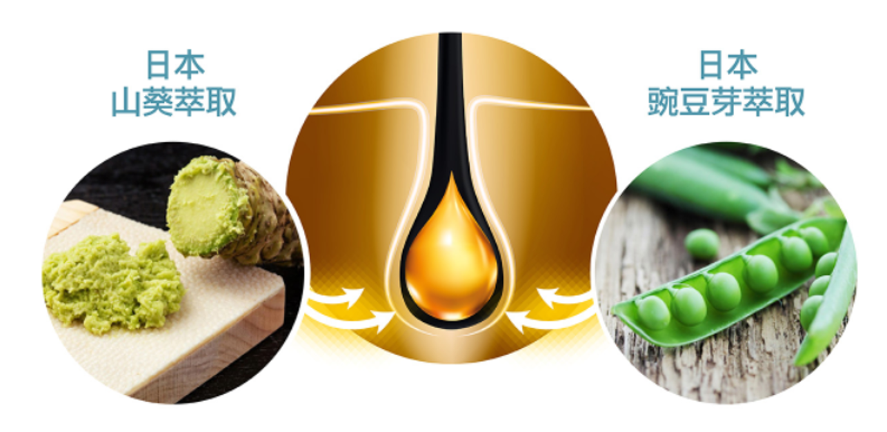 KAMINOWA法之羽生髮素,嚴選日本厚生省生髮功效的「雙效神級生髮成分」日本山葵萃取及豌豆芽萃取而成。