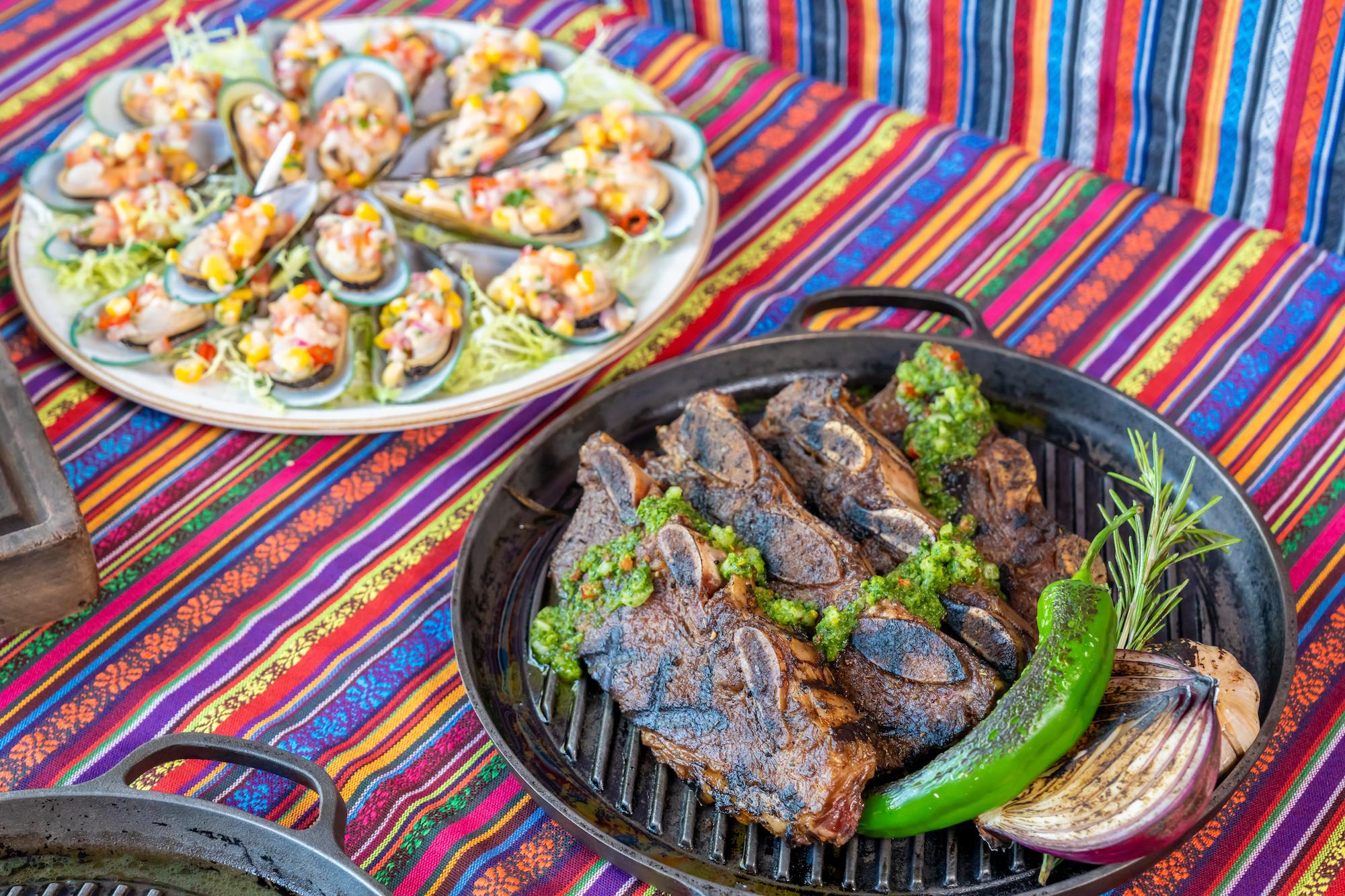 熱葷:秘魯醃鱸魚、烤阿根廷香料西冷牛肉、墨西哥玉米餅配以慢煮牛肉、手撕豬肉和炸魚等餡料、阿根廷香烤牛仔骨(自助晚餐、週末及公眾假期自助午餐限定)、秘魯烤雞配青辣椒醬、烤虎蝦