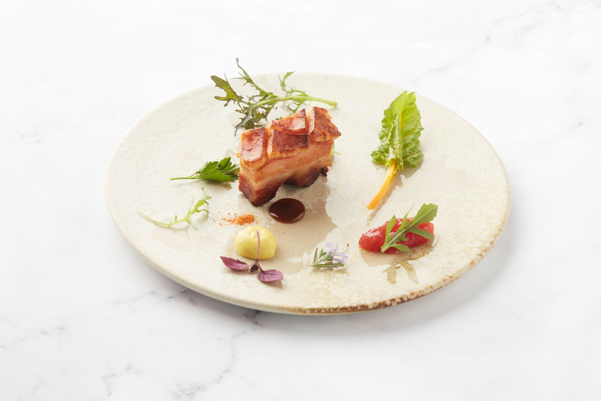 午餐和晚餐菜單以海陸珍鮮食材、香料及兩地烹飪精髓為主軸。先以兩款餐前酒揭開序幕,然後細味荷蘭至尊生蠔,生蠔順滑,富天然海水味,加上醃漬墨西哥辣椒及黑薄荷醬,增添獨特風味。隨後奉上魚油豐腴的油甘魚帶子刺身,配墨西哥辣椒及柚子汁,清新的柚子果香與辣椒的辛香令海鮮口感更豐富。亮點推介經典荷蘭牛肉可樂餅,用上霍爾斯坦牛頸肉做餡料,肉質柔嫩細膩,炸後外酥內軟。主菜可選海鱸魚蝴蝶切,魚肉鮮嫩,質感結實;又或可選脆皮豬腩肉,皮薄酥脆,豬肉細嫩濕潤。最後以特色雞尾酒作結,另有侍酒師精心挑選兩款美酒搭配菜式。