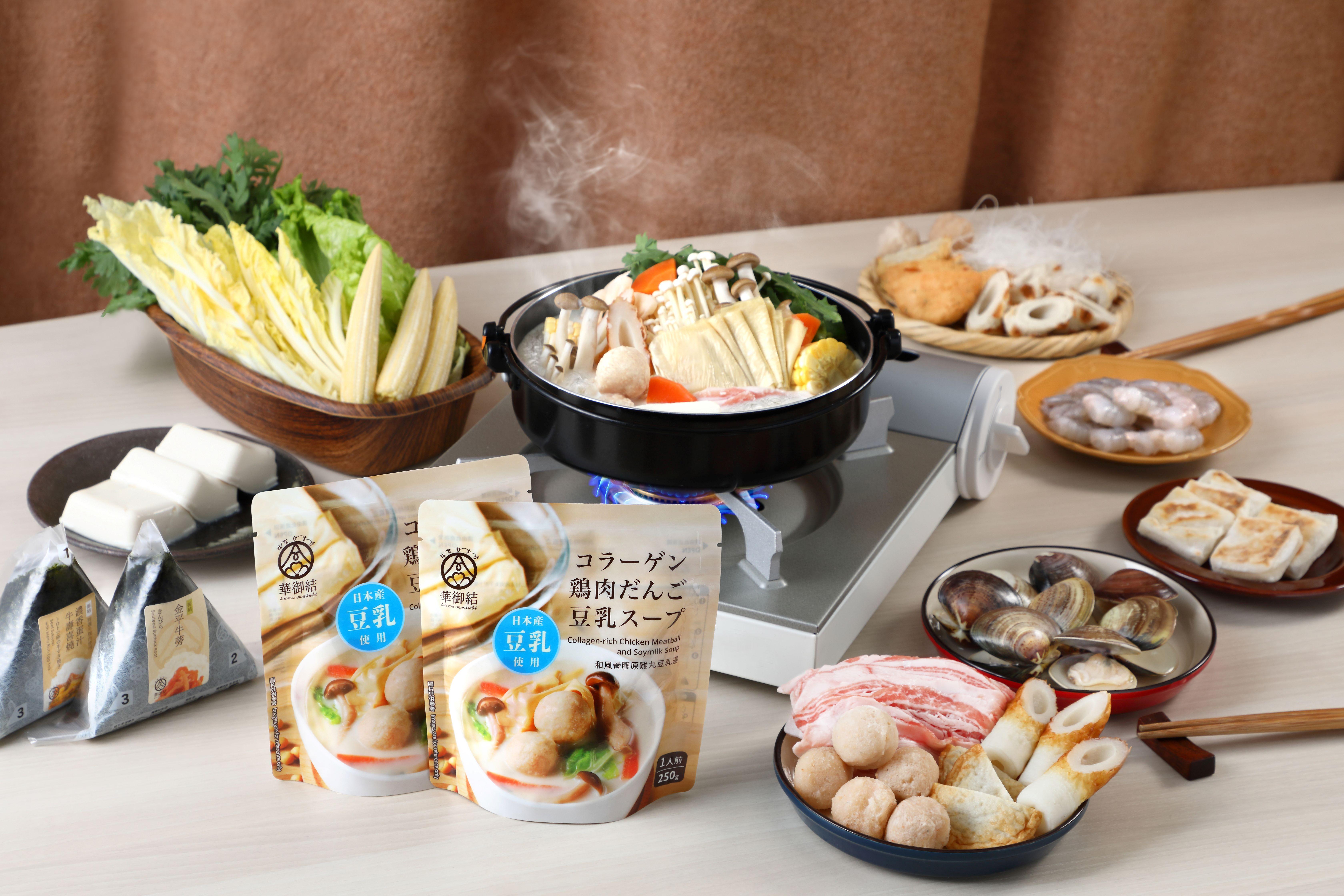 秋冬幼滑日式滋味——經典和風骨膠原雞丸豆乳湯,以全新袋裝豆乳湯登場,放進微波爐加熱,就可以輕鬆即開即飲,成為寒流下的暖胃首選。聖誕佳節相約三五知己圍爐,或開心出發郊遊露營,不可錯過隱藏食法:以和風骨膠原雞丸豆乳湯化身的滋味豆乳湯鍋,既美顏又暖心,聚會享用更添溫馨。放入 [御結] 秋鮭三文魚 與豆乳湯一同熬煮,還能變身層次多元化又冶味的日式雜炊,頓時飽腹感滿滿!配搭華御結各種御結、甜品、小料理、水果杯及沙律,令每個相聚時刻都滿足又窩心。