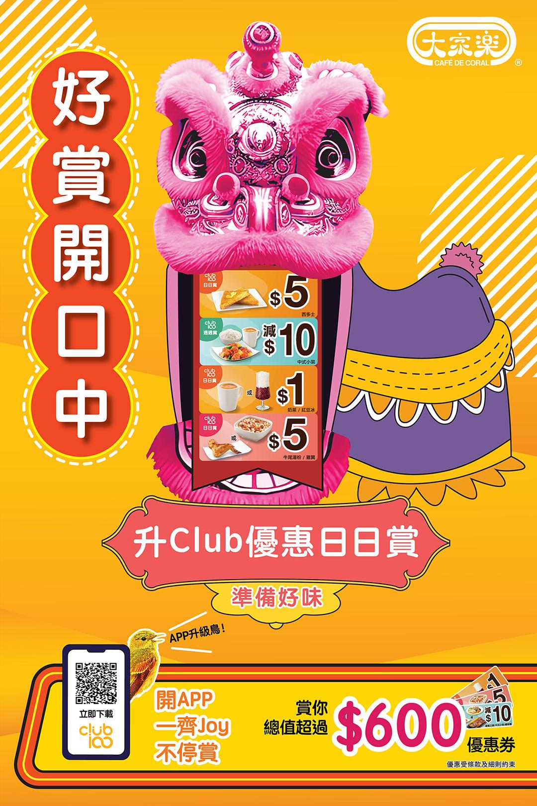 大家樂宣布Club 100 APP 全面升級至 3.0 版本,為會員帶來一系列限定優惠!即日起Club 100 會員可在一連四星期內,每日於大家樂 Club 100 3 .0 APP內領取高達 $600 的優惠,當中有$1奶茶、$5食牛尾湯粉等以至抵價歎盡人氣美食。持有「樂悠咭」的會員還可享受額外的限定禮遇,即睇內文了解詳請!