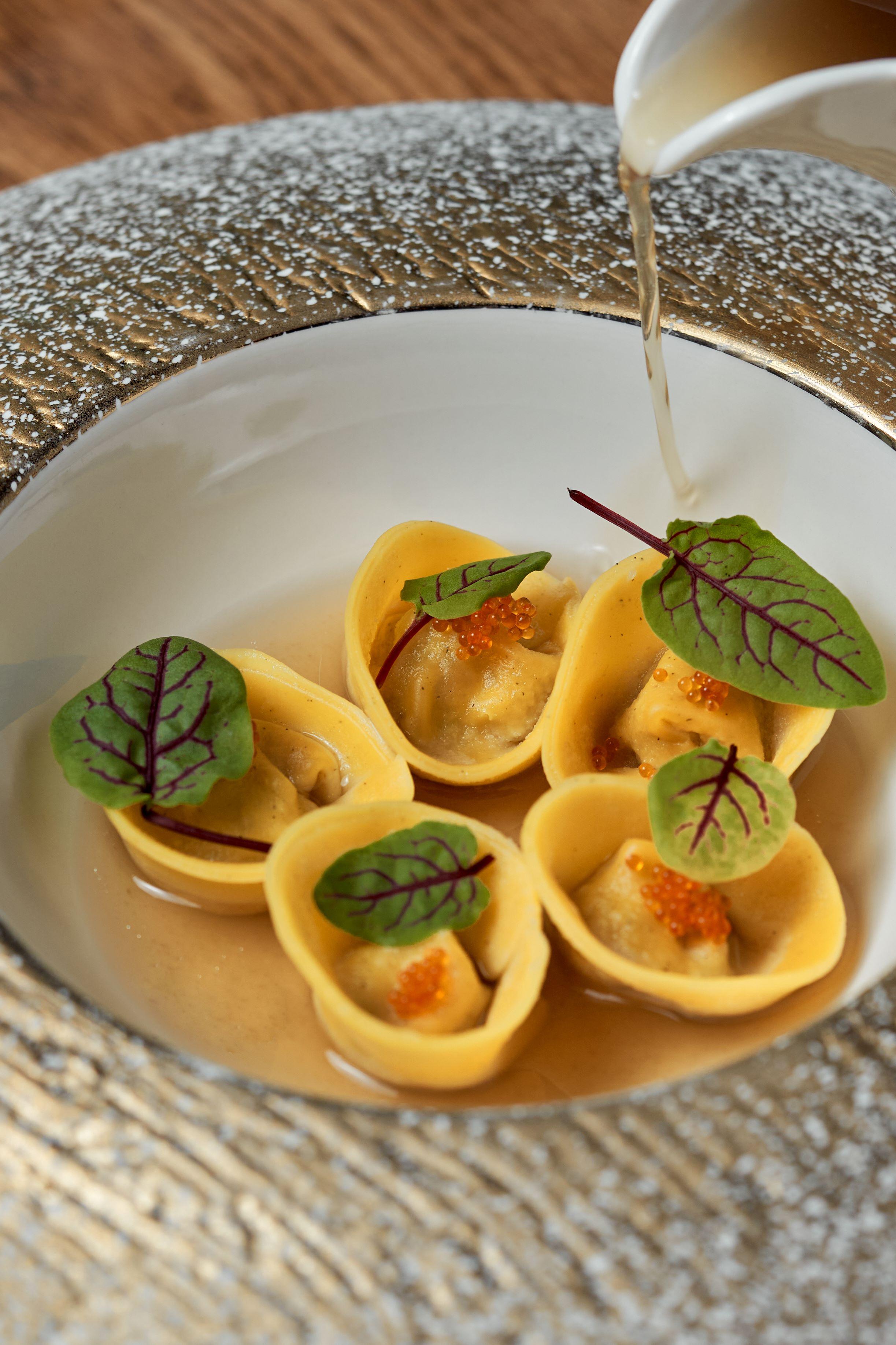 BACI Trattoria & Bar近日推出一系列秋季時令精選菜式,單點菜式包括大閘蟹餅配海鮮清湯 ($238)。大閘蟹肉裹上麵糊後油炸至金黃,外皮金黃酥脆,內裡香嫩,享用時加入自家長時間熬煮的香濃法式馬賽魚湯,配上以分子料理方式製成的清新芫荽「爆珠」,豐富菜式的味道與層次。至於特濃蟹黃川味海鮮濃湯手工扁意粉($268),選用新鮮蟹肉及香濃蟹黃搭配手工扁意粉,加入濃郁惹味的四川海鮮醬汁,令人一試難忘。另外更有芝士藍蟹肉薄餅($268),鋪滿軟芝士、馬鈴薯片、鮮美藍蟹肉及車厘茄,最後配上檸檬皮,蒜蓉辣椒及新鮮羅勒。