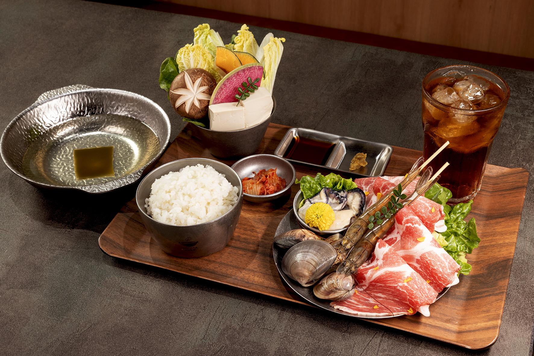 HAKATA NABE推出多款全新菜單及美食,午市必試北海道米豚套餐$78(豚肩或豚腩120g),選用以北海道米飼養的北海道千歲產米豚,肉質天然清甜,口感鬆軟細膩,脂香與鮮味平衡。套餐已包括前菜、鍋物、主食(白飯 / 烏冬 / 拉麵)、蔬菜籃及飲品(可樂 / 烏龍茶),另可自選牛骨湯、雞清湯、 昆布清湯等6款湯底,份量十足。另外還有齊集和牛及米豚的精選和牛.米豚套餐$98(赤肉60g、豚肩或豚腩120g),除了北海道米豚,還有肉味馥郁的十勝和牛,雙倍滿足!如果想更豐富,可選特選海鮮套餐 $108(大沙白蜆、虎蝦2隻、廣島產蠔2隻、豚肩或豚腩50g),大沙白蜆肉厚多汁、虎蝦彈嫩爽口,配上鮮味爆發的廣島蠔,鮮味令人回味無窮!