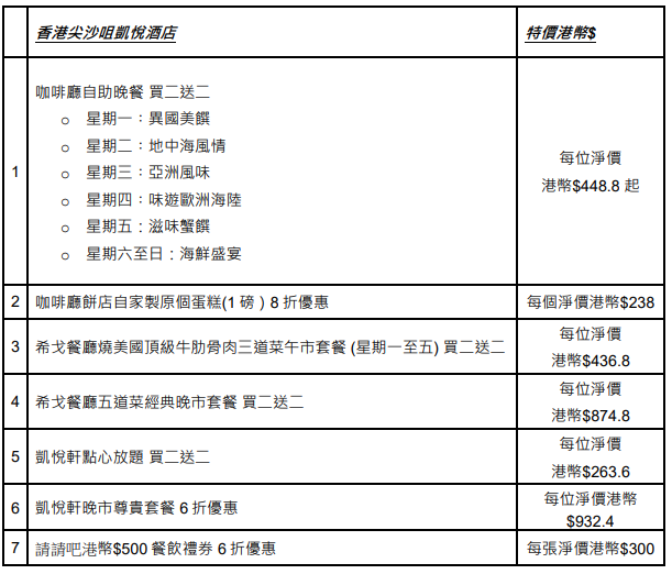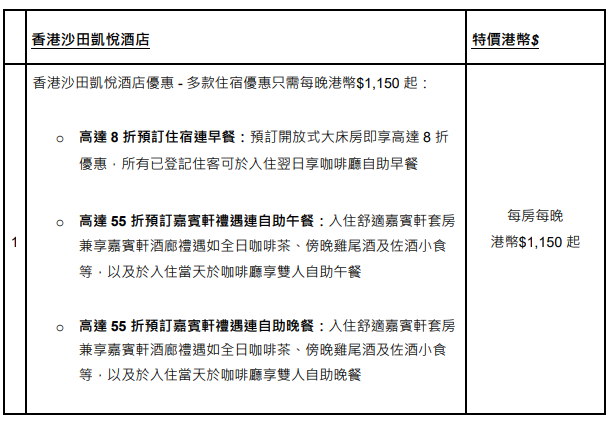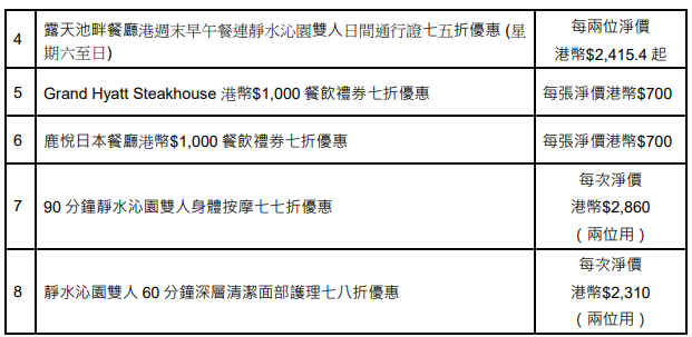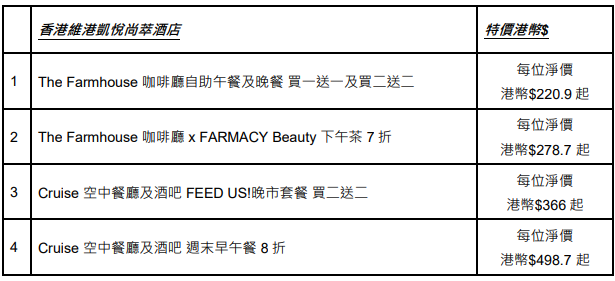 各酒店餐飲、水療及住宿優惠訂購日期: