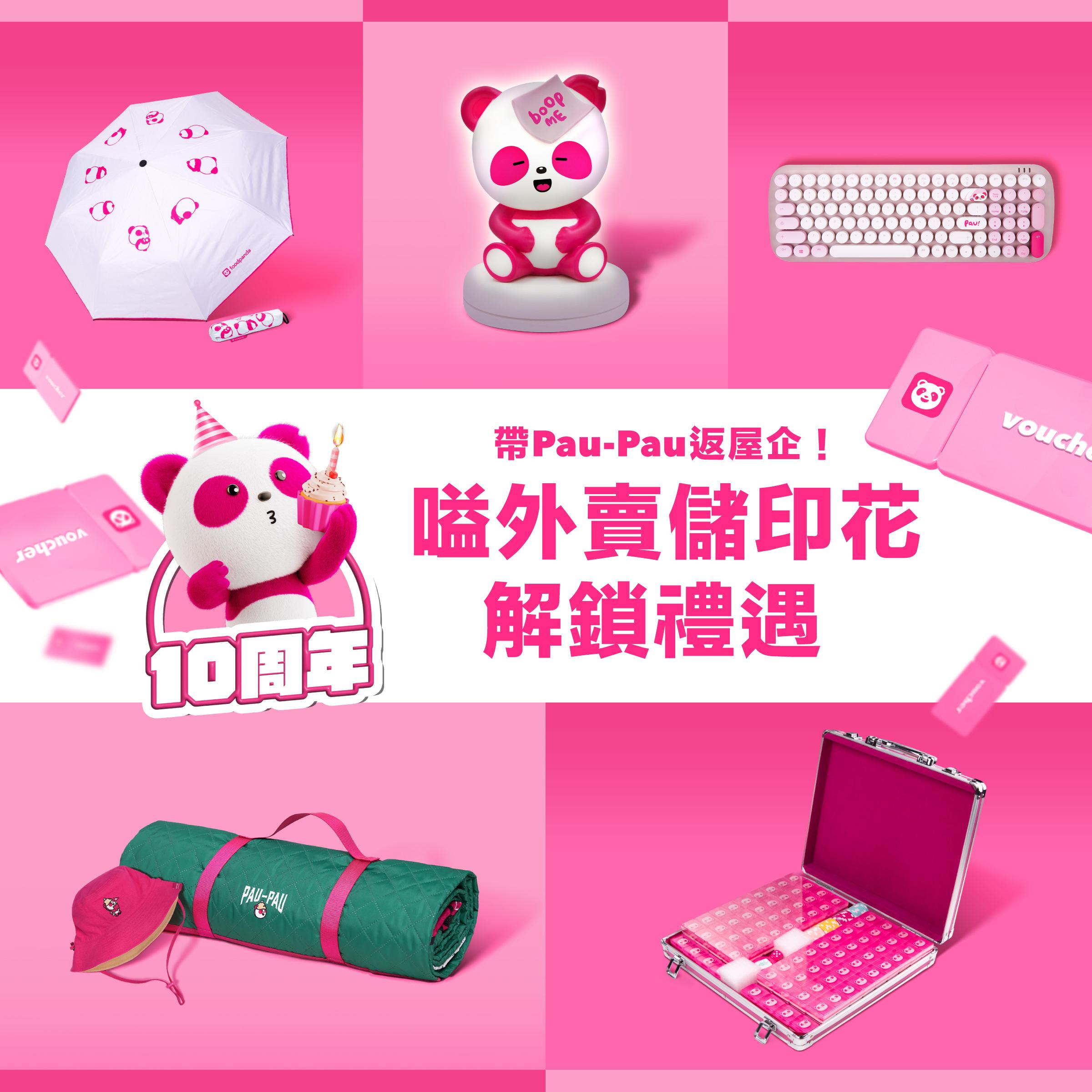 凡於活動期間於 foodpanda 單次消費滿$100(包含平台費、運費及其他適用費用並計算折扣後),即可獲得印花一枚,集齊印花即可兌換指定獎賞。每次兌換獎賞後,印花數量亦會繼續累積,集滿指第10枚印花起,更有機會換領foodpanda獨家限量精品,包括foodpanda品牌大使 Pau-Pau 造型的雨傘、USB 小夜燈、鍵盤、露營套裝和麻雀套裝等。