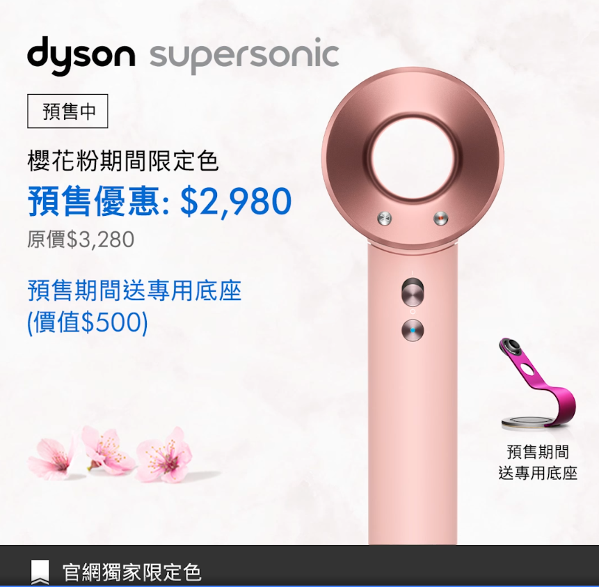 全新 Supersonic™ Origin風筒 櫻花粉期間限定色預售優惠