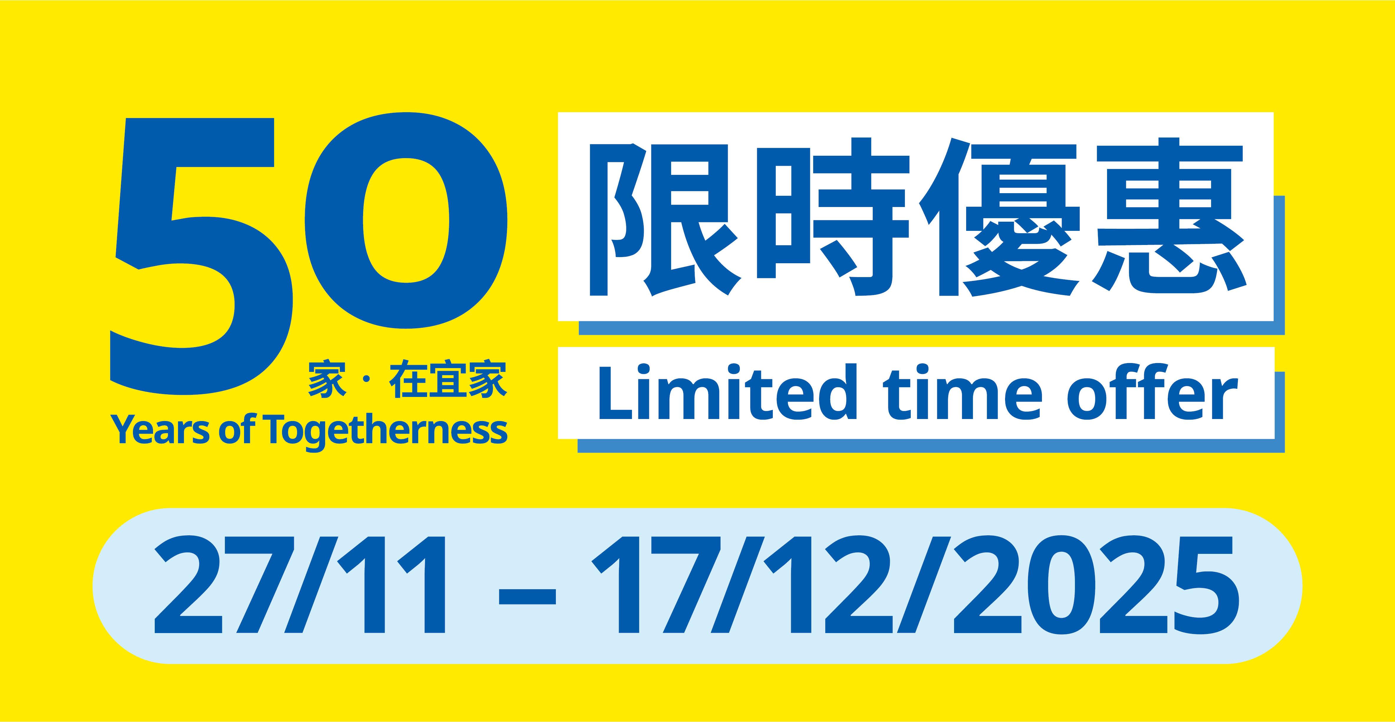 IKEA由即日起至12月17日,推出第二階段精選產品優惠,超過30款經典熱賣產品低至5折!今次優惠繼續IKEA「低價創造無價」的核心理念,優惠產品涵蓋傢俬、家飾及收納好物,全都是家居必備好幫手,優惠期有限,大家一於把握機會!