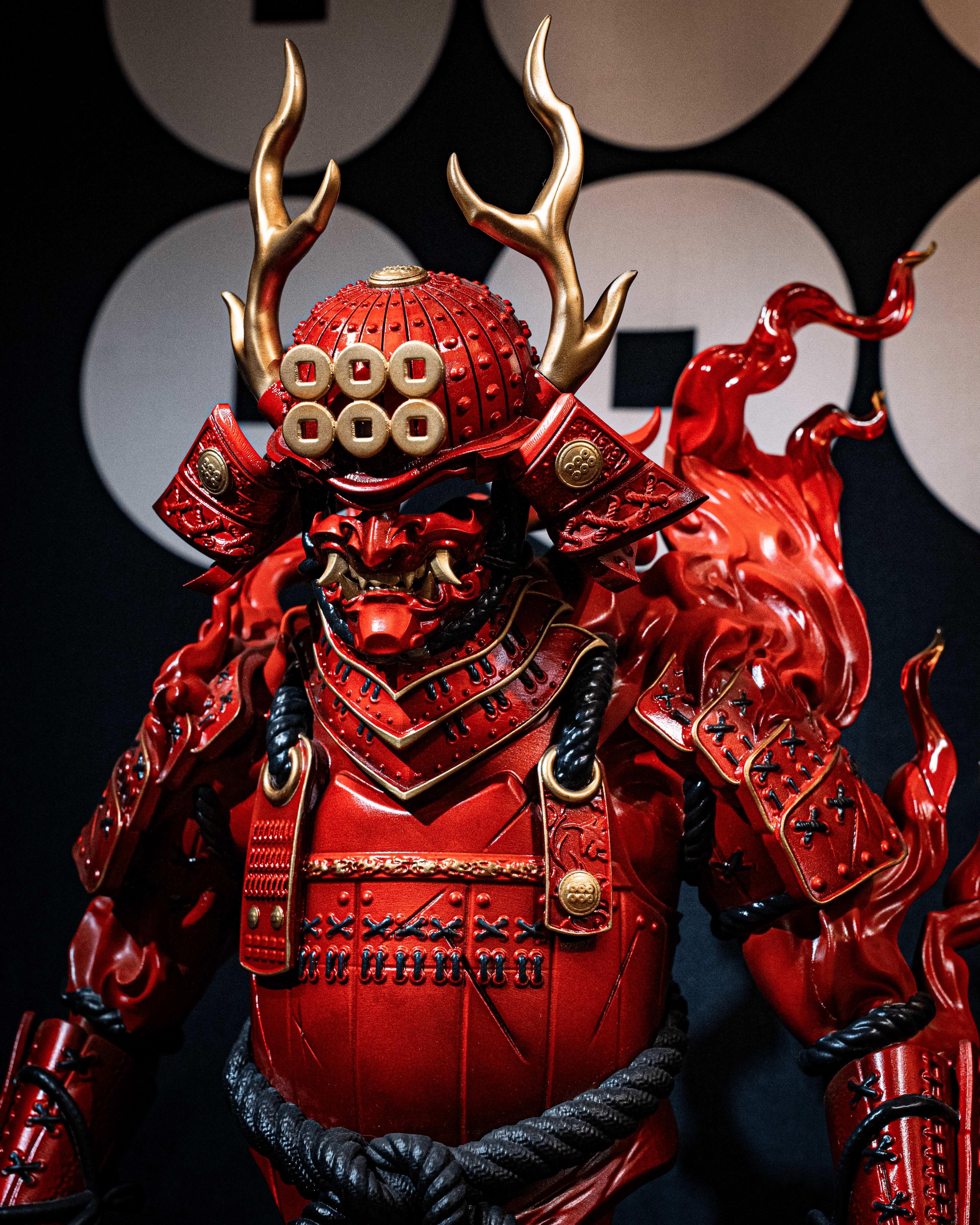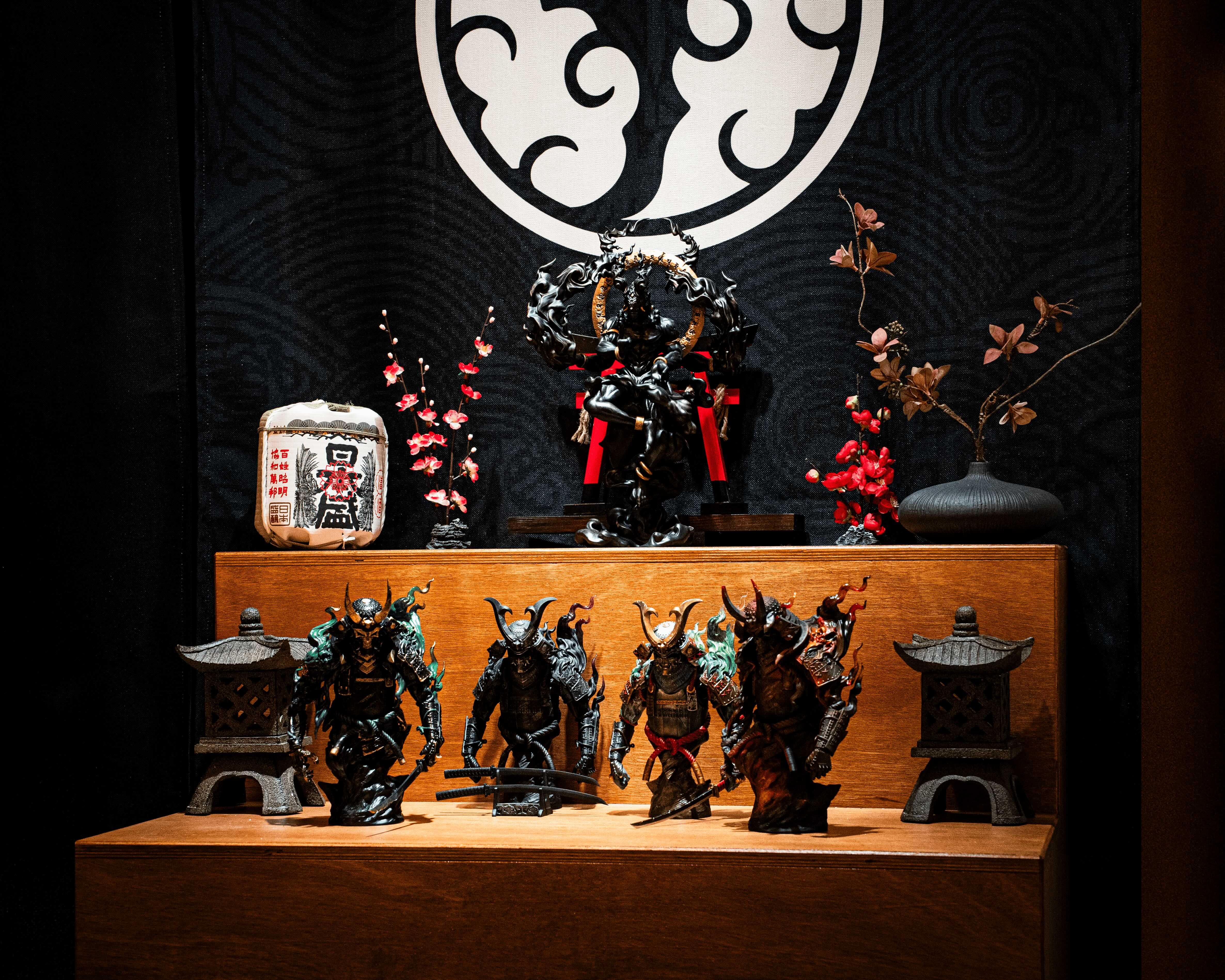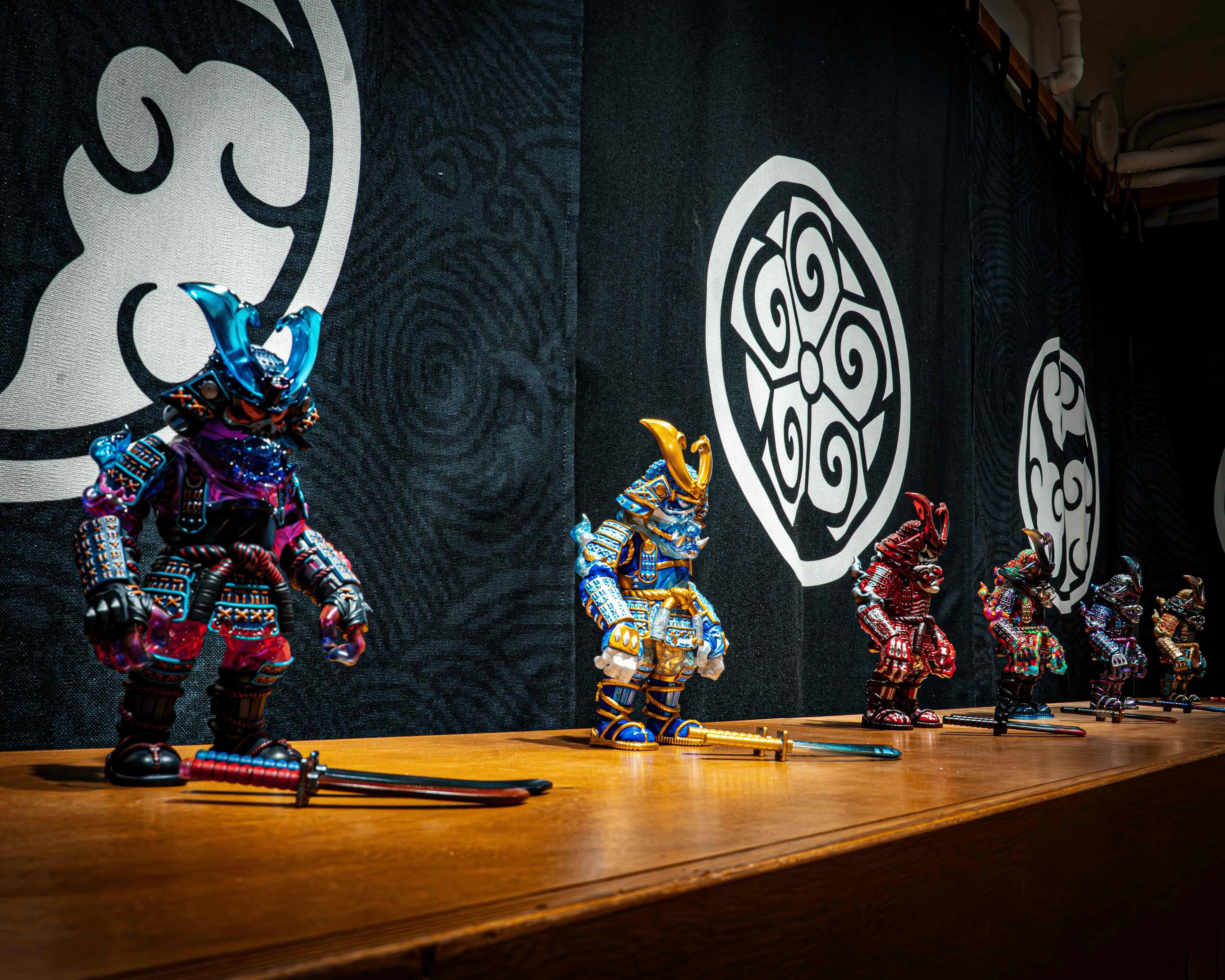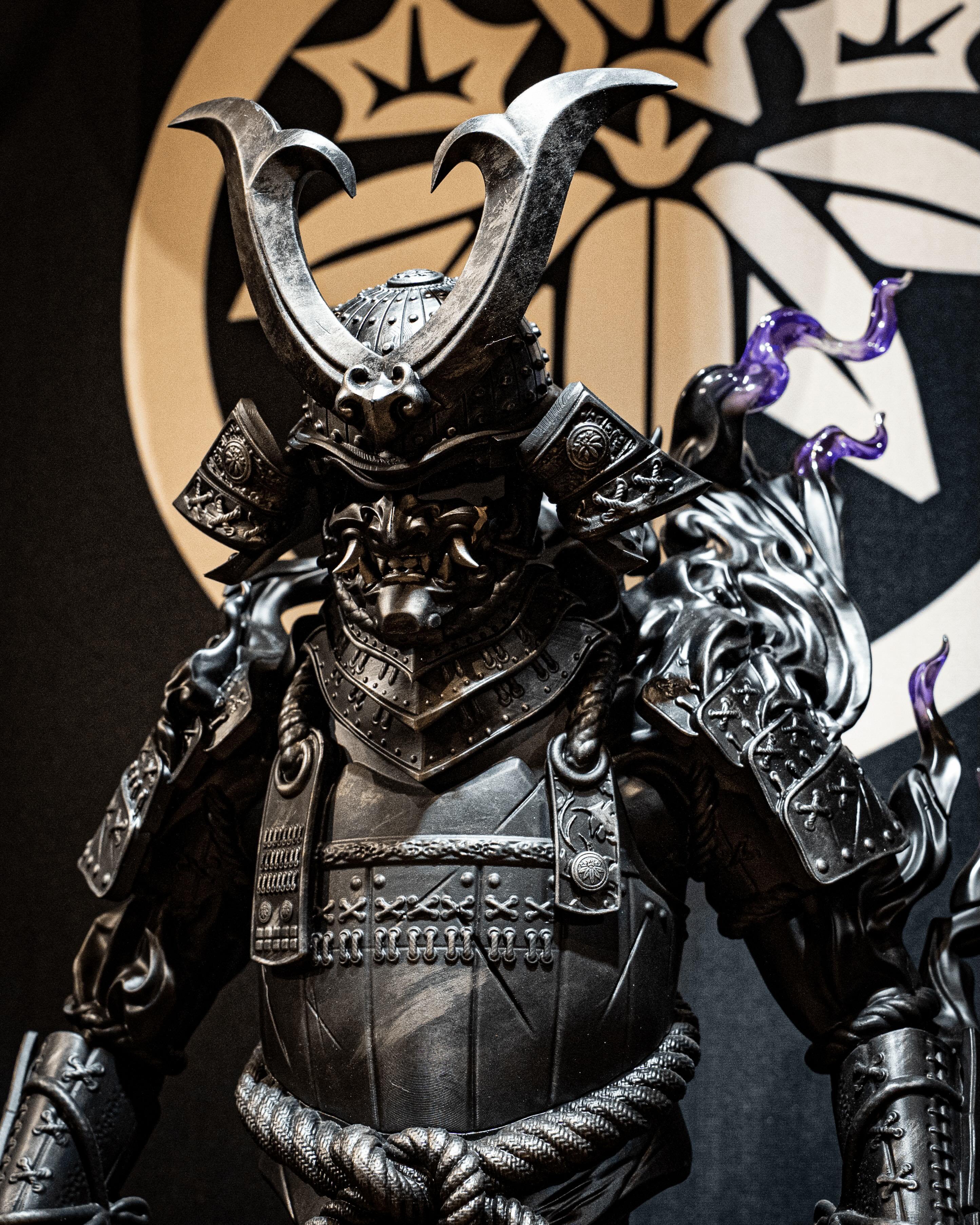 展覽的最大亮點為三款以「執念・燃燒・輪迴」為主題的60cm大型雕像。這些作品極具壓場感,細膩刻畫武士鎧甲的厚重質感與靈魂的張力。雕像不僅開放現場欣賞,更接受預訂,讓收藏家能將這份武士魂帶回家中。