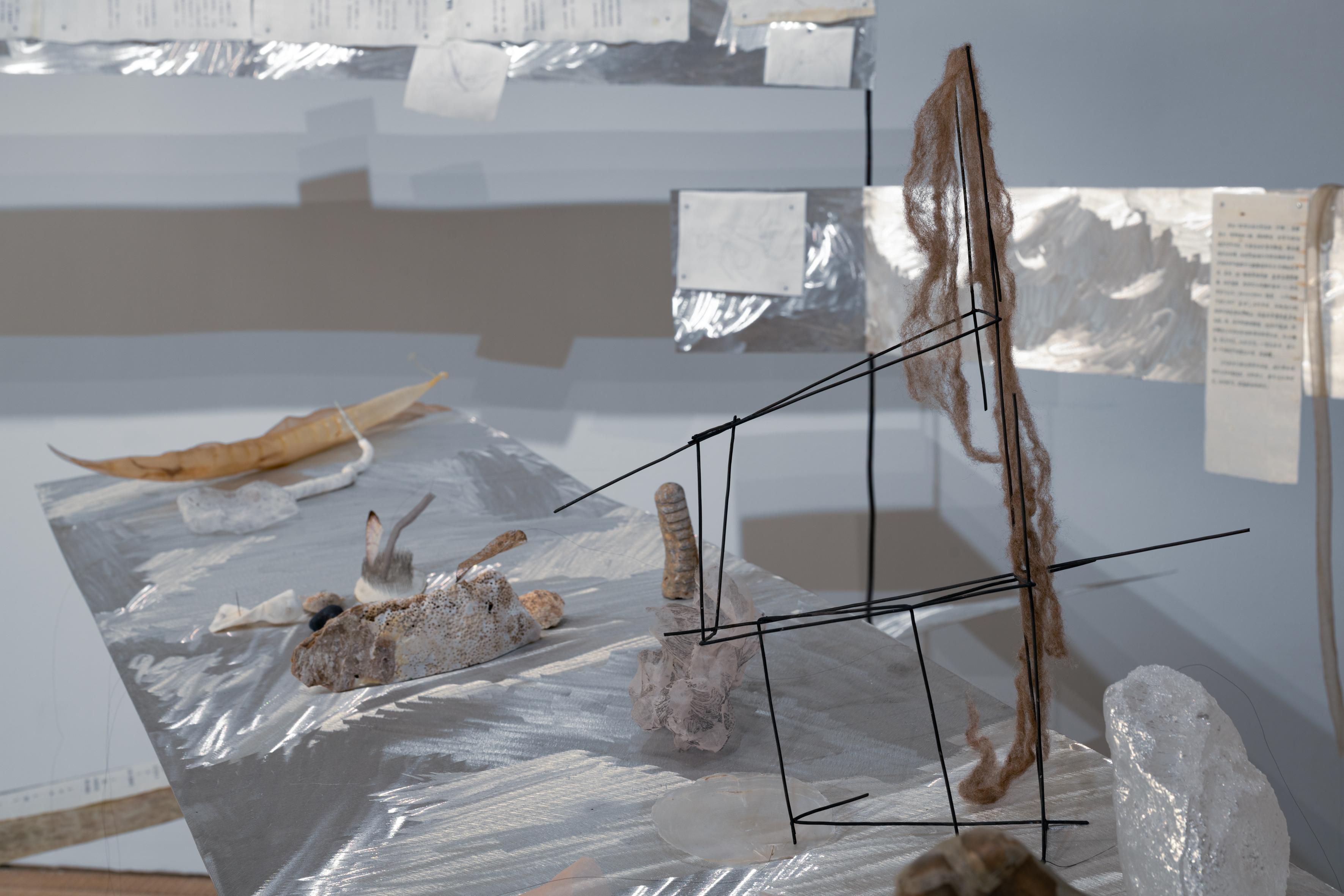這次《胡曉媛:異路》展,她將透過創作作品探討個體與群體的關係,呈現殘破社會中,個體如何存在和選擇。胡曉媛聚焦社會和生物系統的丟棄物,運用舊鋼筋、日常器具、昆蟲翼等材料,重新組合以探討各種元素的意義。