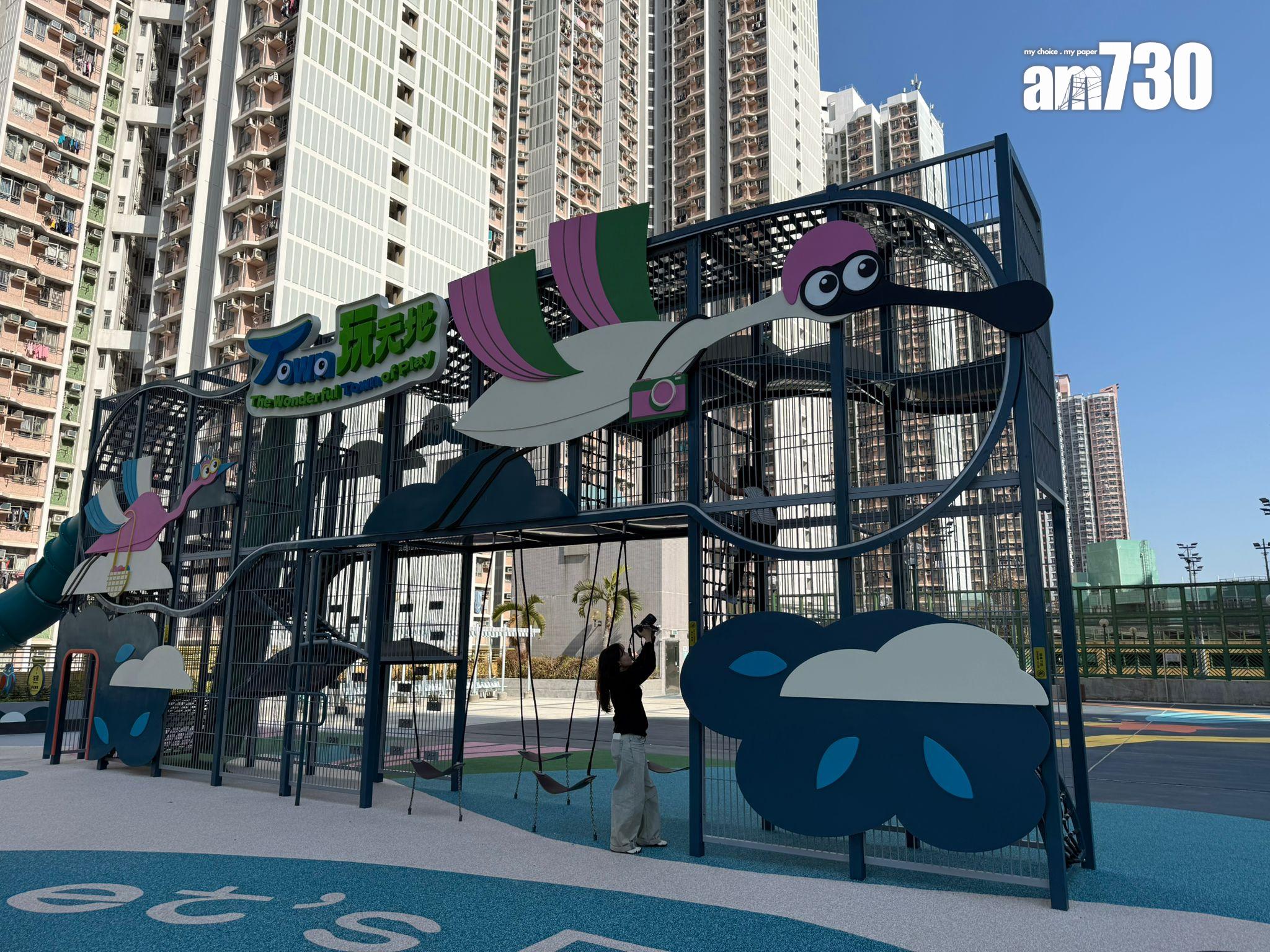 Town玩天地將於12月21日開幕。作為濕地主題公園,設計團隊One Bite特別選用繽紛色調設計。高達5米的「BillBill歷險塔」及「BulBul樹屋」絕對能夠瞬間吸引全場小孩目光。「BillBill歷險塔」塔頂設有「濕地之星」黑臉琵鷺BillBill,小朋友須爬上垂直攀爬架,才可與BillBill見面,考驗他們的手腳協調及勇敢程度。
