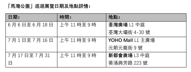 「馬灣公園」巡迴展覽日期及地點詳情: