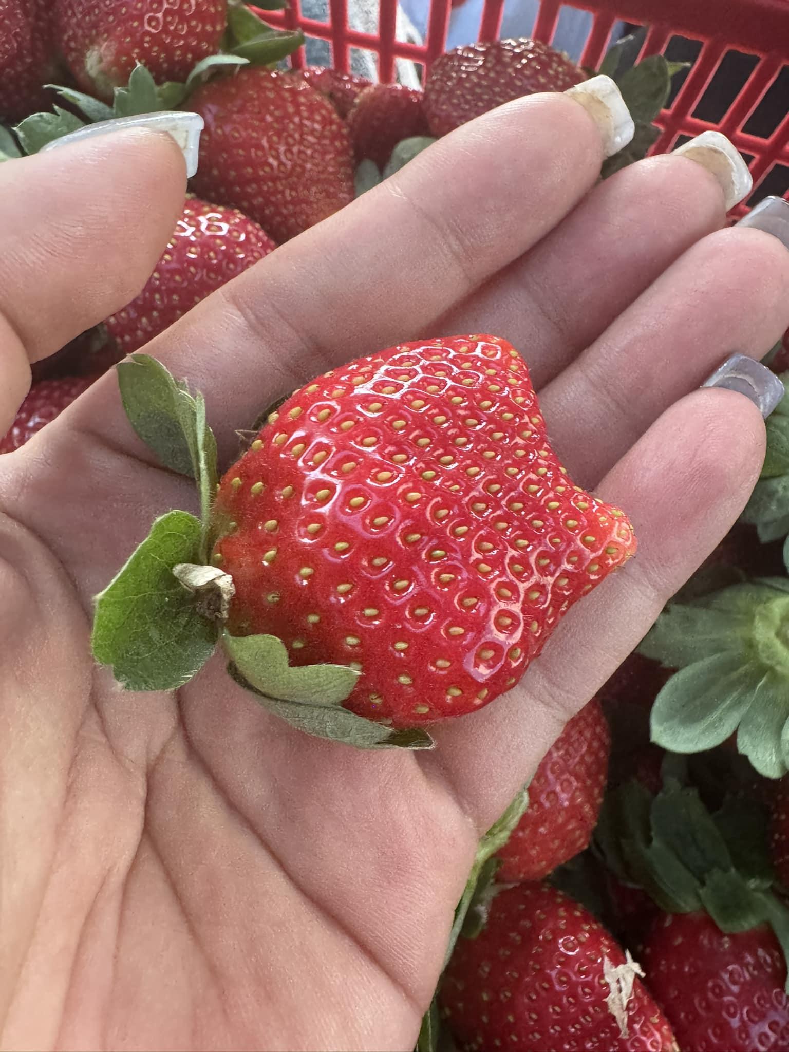位於元朗的士多啤梨園種有8個士多啤梨品種,當中包括日本品種妙之香。當造的士多啤梨特別大粒,色澤紅潤。