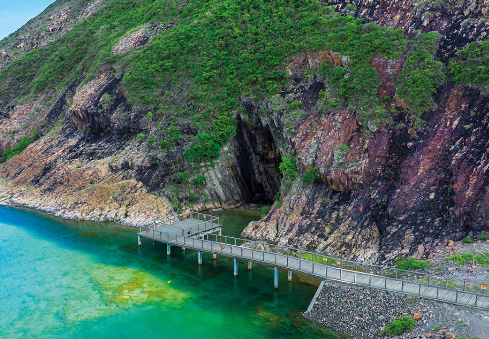 萬宜水庫位於香港地質公園旁邊,能近距離觀賞地質公園著名的海蝕洞及六角岩柱。家長不妨帶小朋友到位於萬宜水庫的糧船灣,一覽香港特有的海蝕洞及六角岩柱,順道教育他們愛護環境。