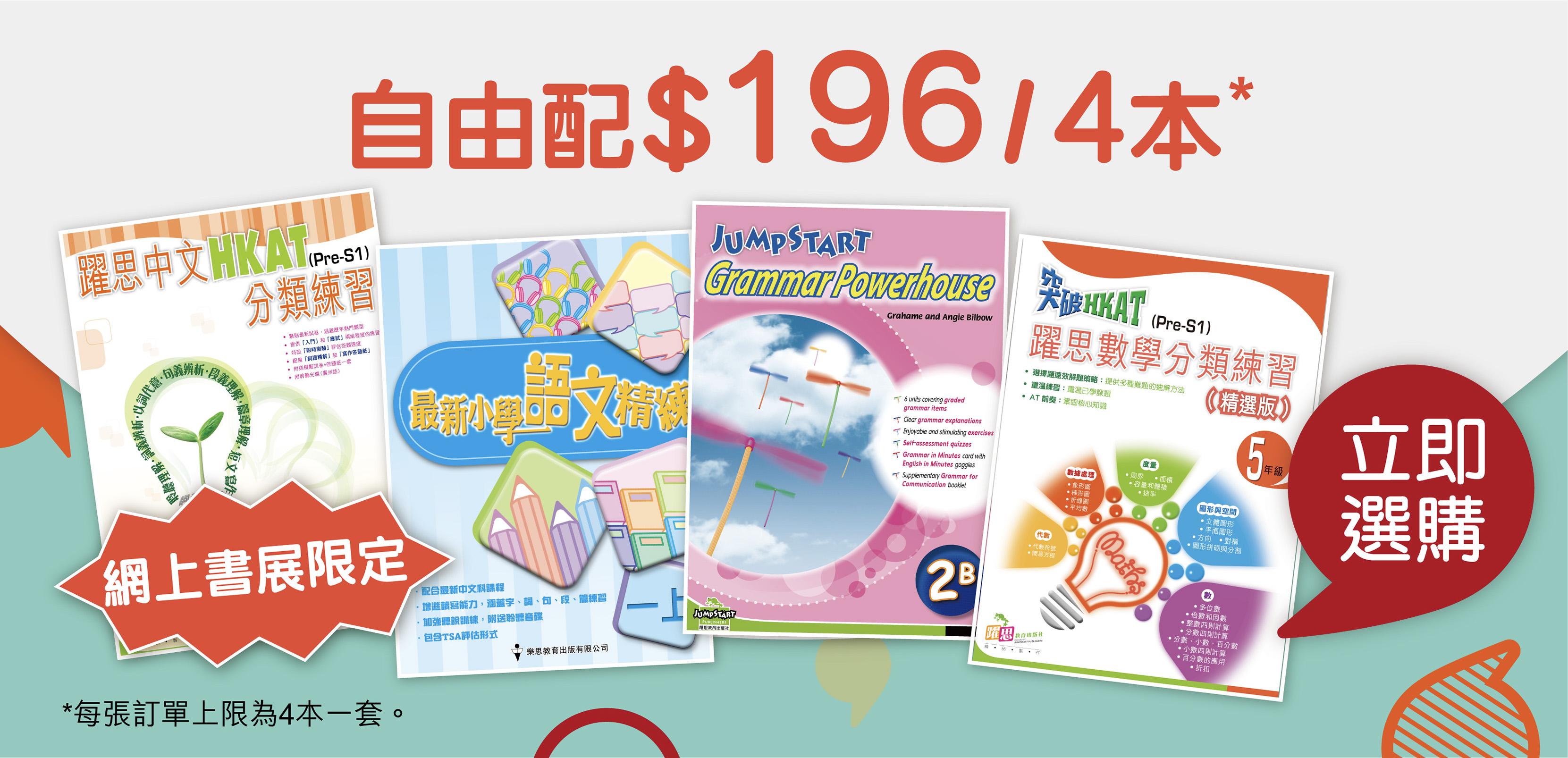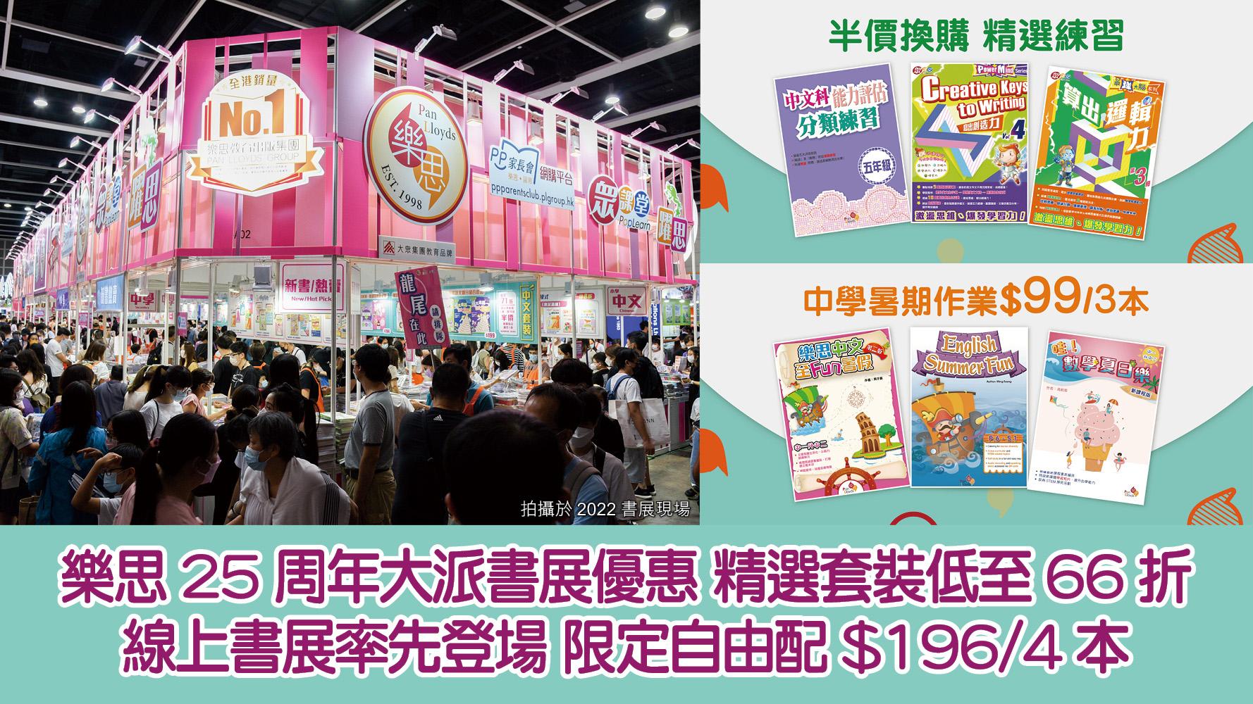 樂思旗下集合了3大補充練習品牌:樂思、躍思及眾課堂,匯聚了優質多元、專業智慧的教材產品,照顧學童於各階段的學習需要。今年書展,樂思推出了一連串精彩優惠吸客,包括全新及熱賣中小學補充練習8折起,而精選小學套裝及中學套裝更分別低至71折及66折,買滿4套更額外減$25。