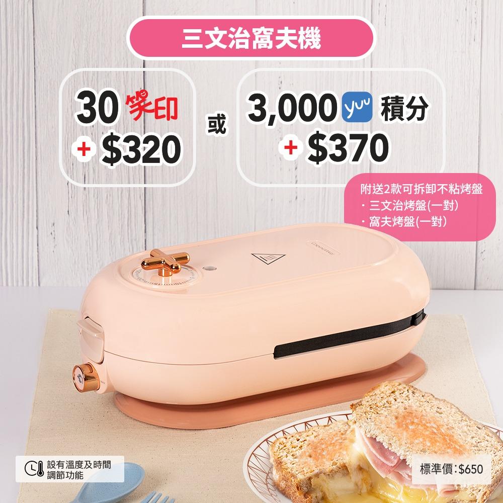 三文治窩夫機 30個笑印加$320或3,000 yuu會員積分加$370 (標準價$650)