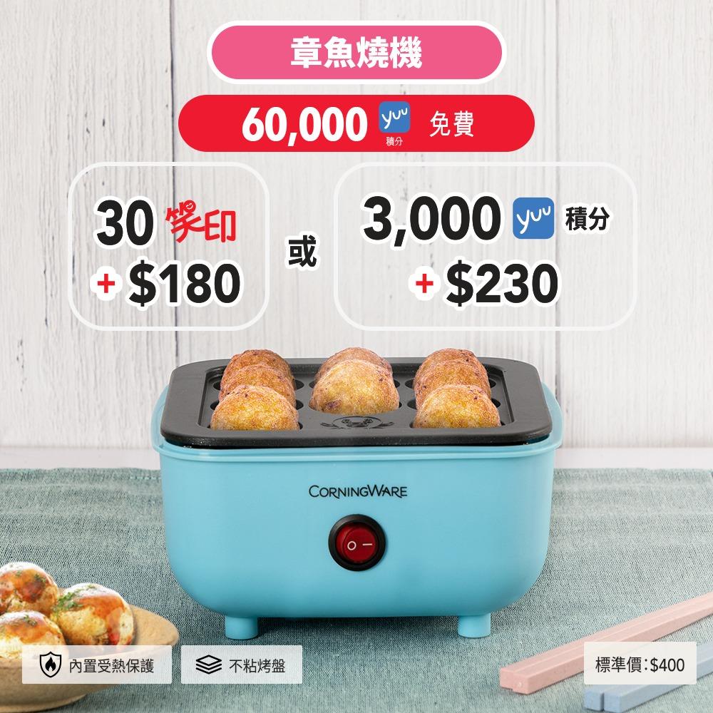 章魚燒機 .60,000 yuu會員積分免費換領 .30個笑印加$180或3,000 yuu會員積分加$230 (標準價$400)