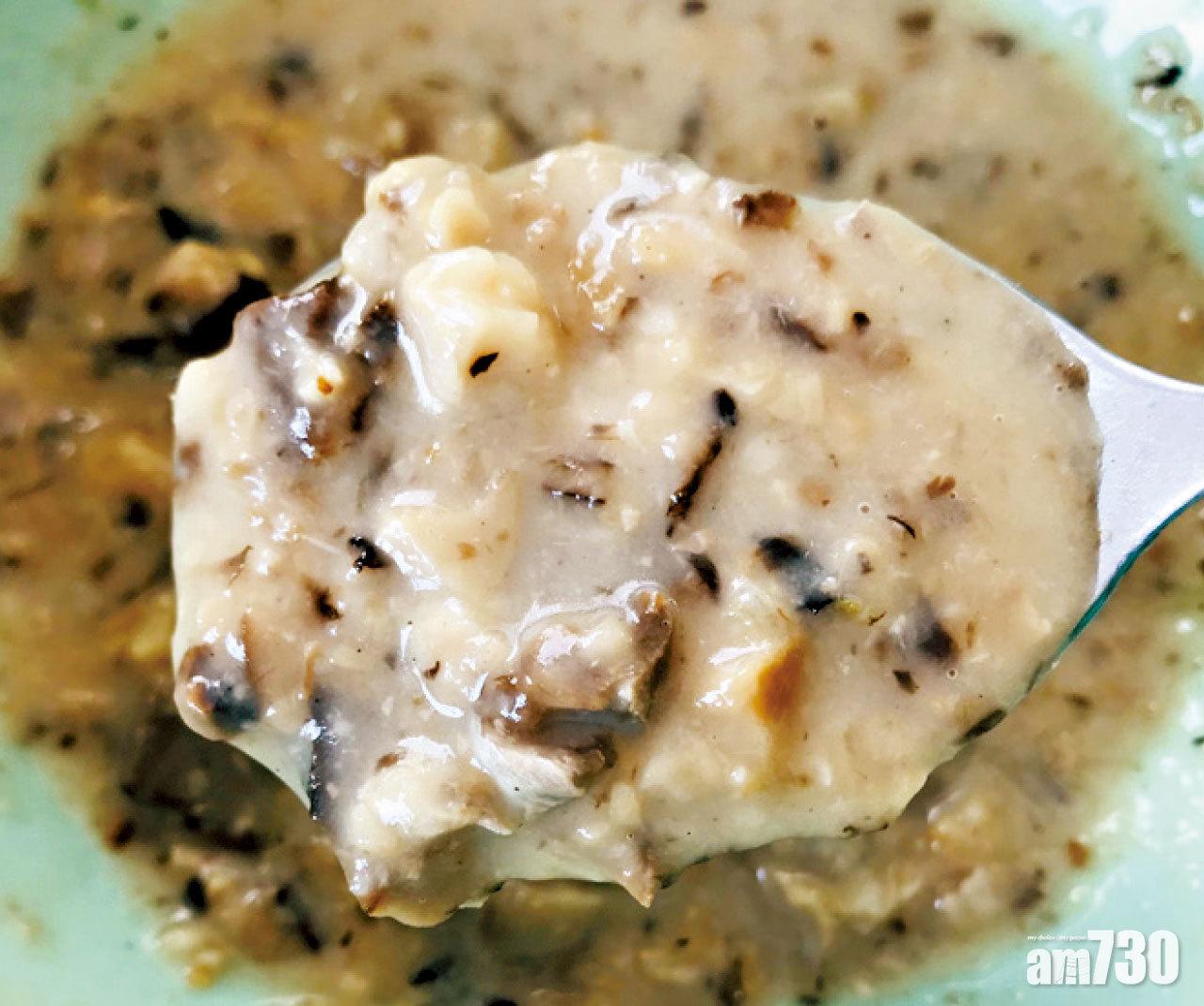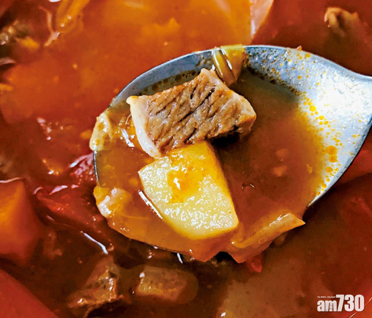 日式豚肉味噌湯,材料有豚肉眼片、薯仔、白蘿蔔、紅蘿蔔、本菇及鮮冬菇等,加入白味噌、紅味噌、鰹魚粉及味醂等熬製,湯料與湯水比例幾乎是二比一,就算是清湯也非常飽肚。