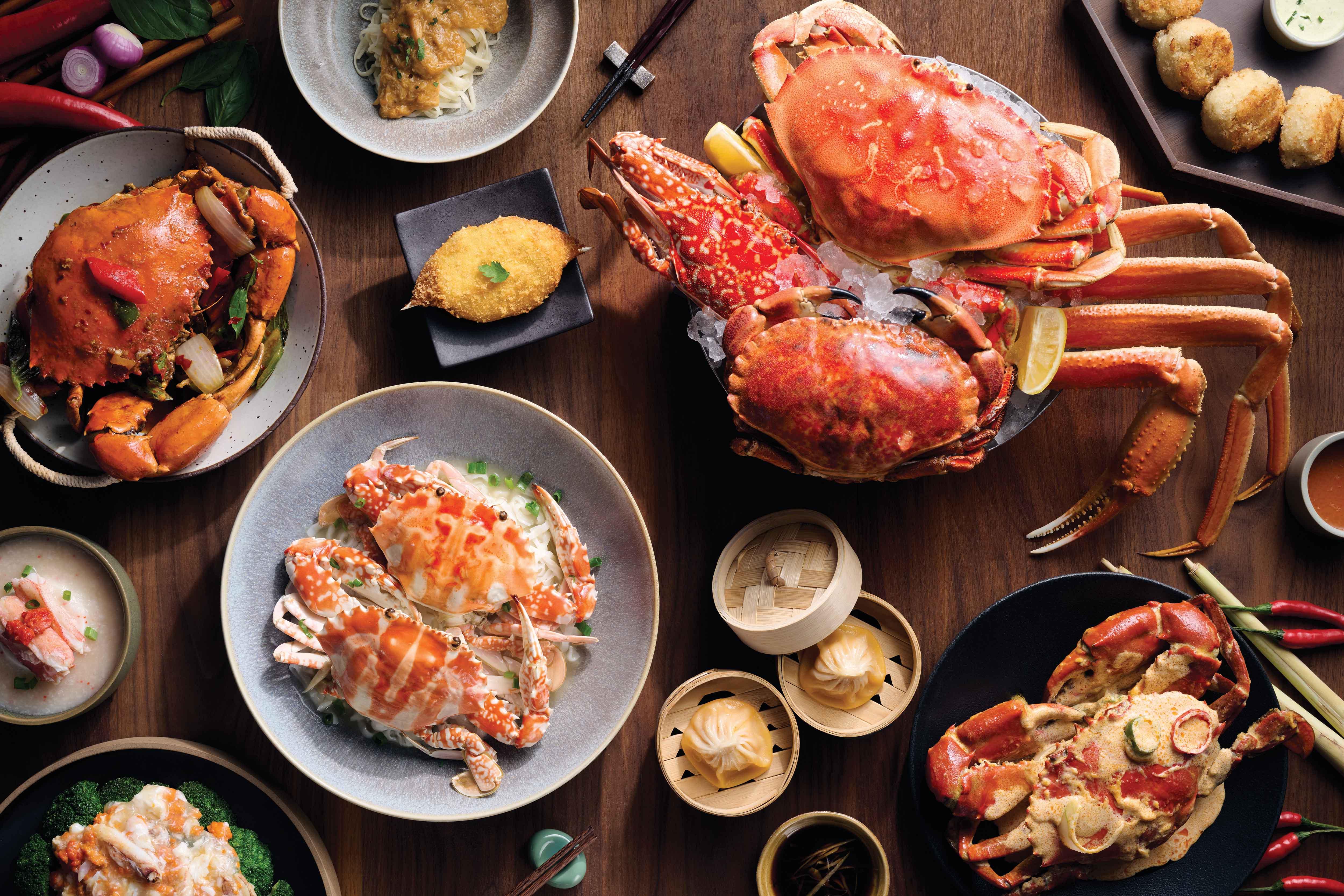 蟹宴自助晚餐由酒店行政總廚黃致銓(Tony Wong)帶領的專業廚師團隊以各地優質鮮蟹入饌,冰鎮鮮蟹鮮味十足,包括英國麵包蟹、亞洲紅蟹或加拿大鱈場蟹腳等。熱盤則齊集多國風味,包括湖南炒辣蟹、泰式咖喱炒蟹、焗釀蟹蓋和西式煎蟹餅,每一款都香濃滋味。另外更有中式花雕雞油蒸蟹、蟹粉小籠包及蟹皇扒時蔬,即席烹調專區更供應香氣四溢的秘製蟹粥和蟹粉撈麵,非常吸引。