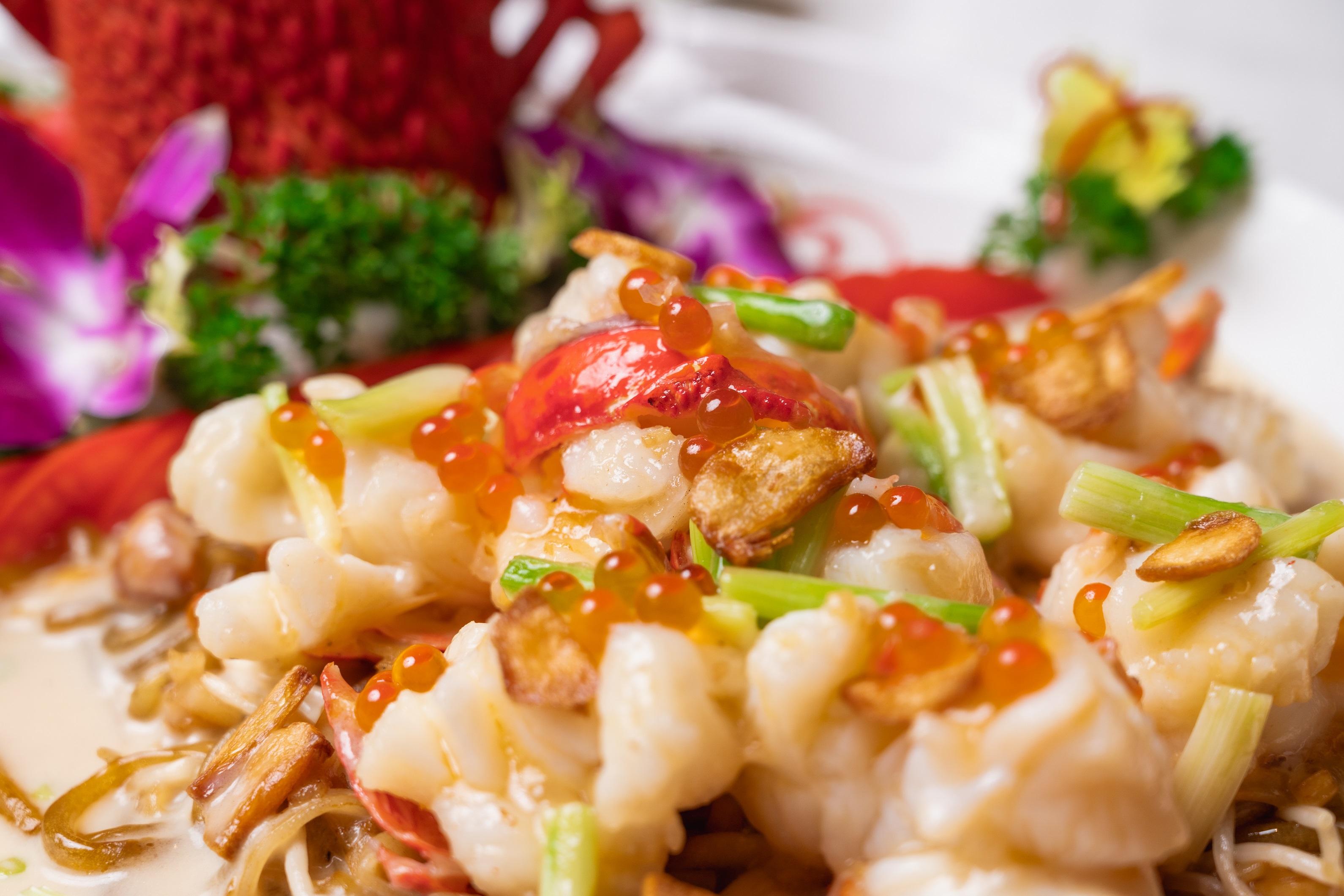 裝修後的「名廚」,菜式同樣精彩,除了提供精選套餐以外,更有不少別具巧思的新菜式出場。 龍皇藏金衣,菜式名稱已極具氣派,賣相更是震撼眼球,其實這是大廚張師傅將酸菜魚解構並創造出的一道新菜式,將酸菜魚的湯汁與每天手工製作的河粉及紅薯粉結合在一起,保留了鑊氣及酸辣香氣之餘,張師傅以南澳龍蝦取代了酸菜魚常用的石斑,先以熱鑊加薑蔥爆炒龍蝦球,再贊上中國黃酒,取其香氣,香氣濃郁的醬汁簡直是整道菜式的靈魂,加上啖啖肉的爆炒龍蝦球,以及香港人至愛的河粉,煙韌彈牙倍增,令人回味無窮。