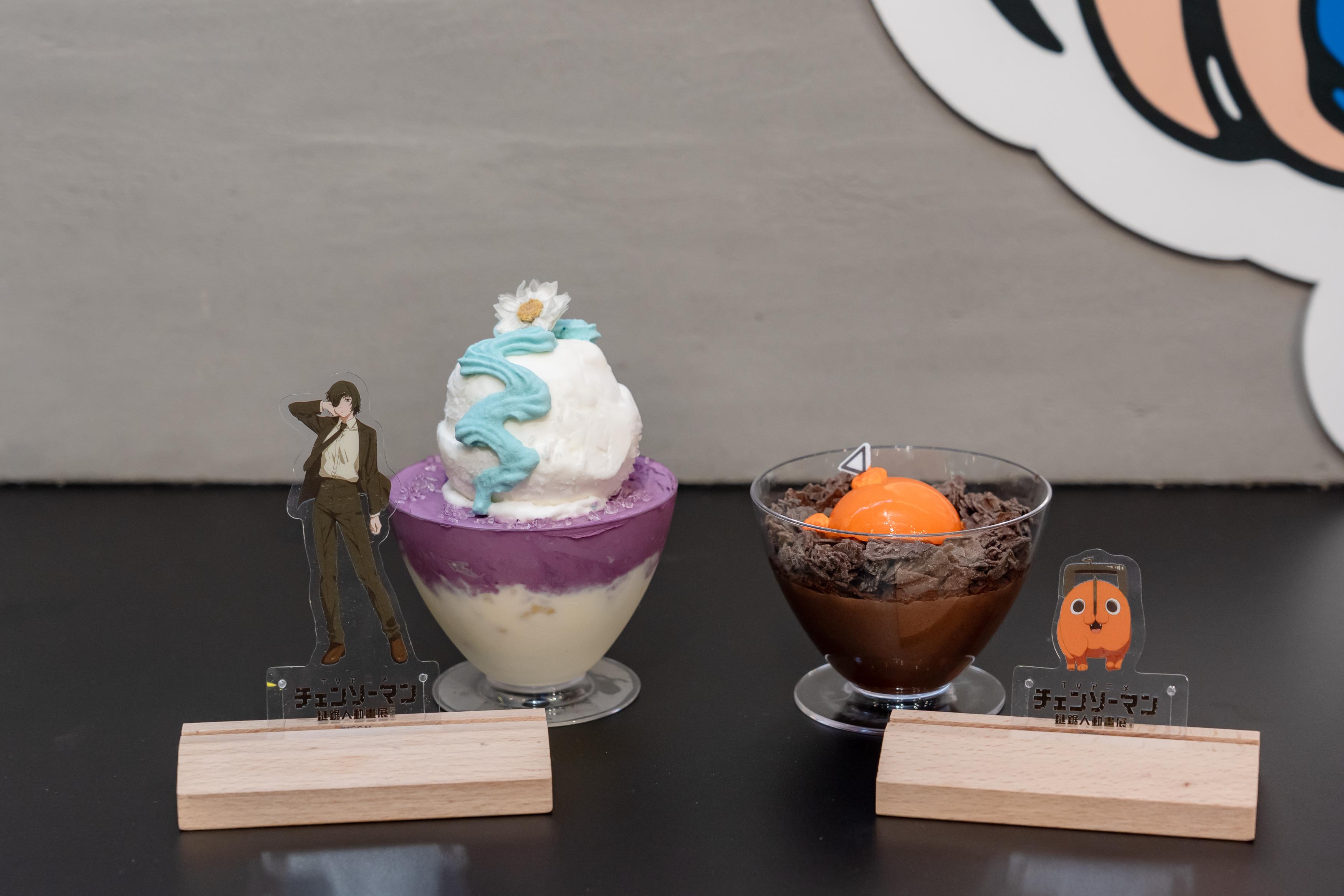 至於位於 B1 層的 F&B 專區,備有多款《鏈鋸人》主題輕食和飲品,7款人物主題輕食包括靈感源自故事中真紀真與淀治的第一餐「真紀真日式烏冬定」食、「淀治芝士肉醬漢堡」、以契約惡魔「狐狸」造型糖紙點綴的「早川秋惡魔蜜糖鬆餅」等,部分輕食附贈角色書籤,除此之外有5款人物打印咖啡及7款梳打飲品,購買梳打飲品即可盲抽隨機5款人物杯墊,留下難忘回憶!