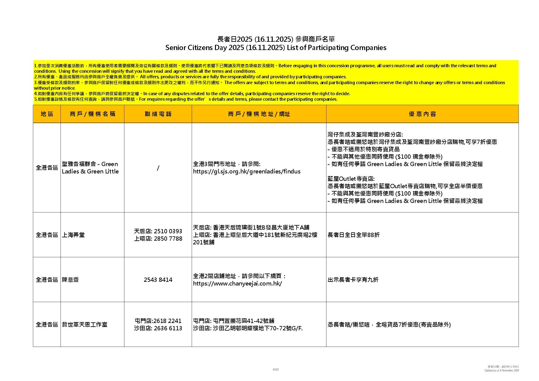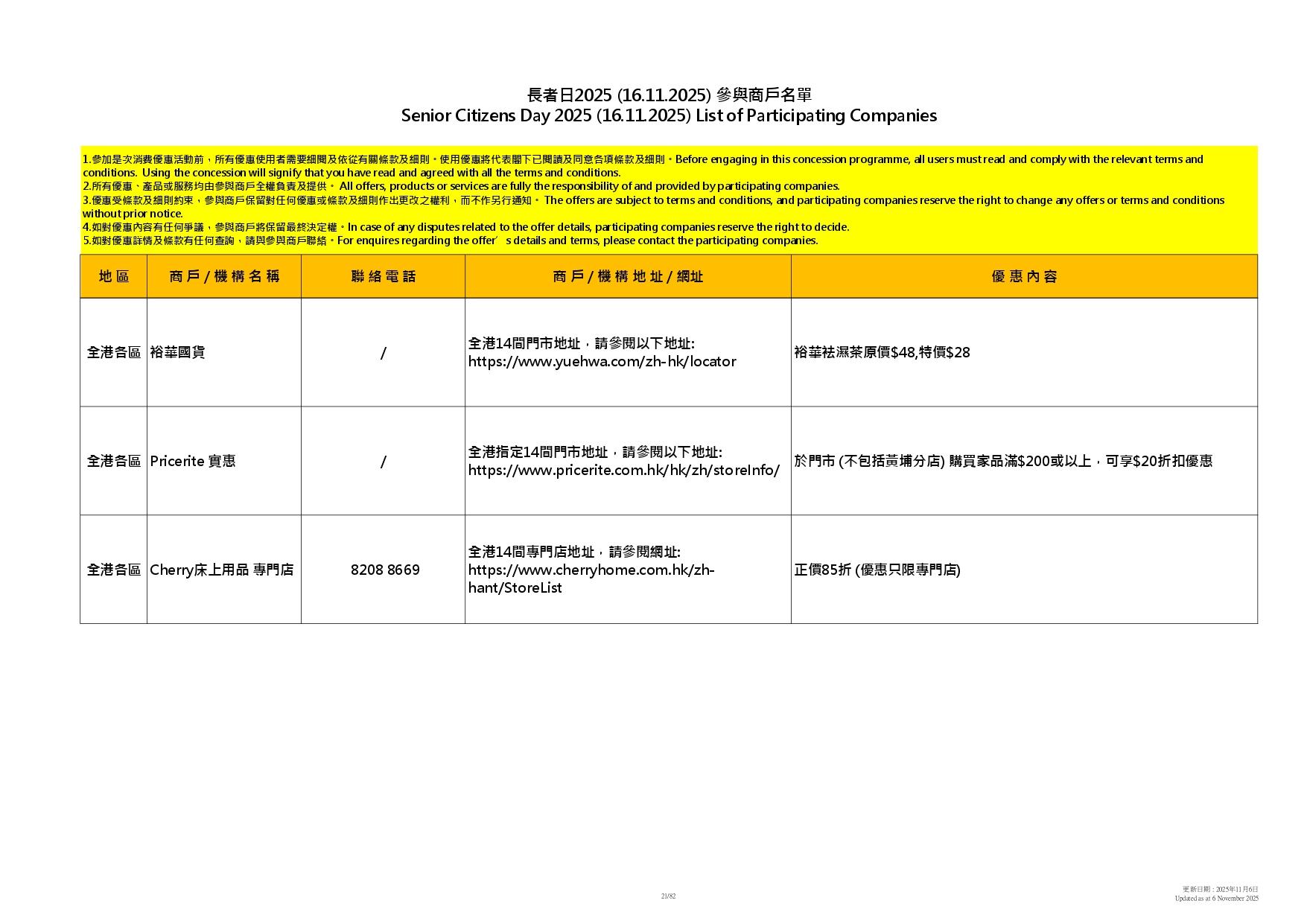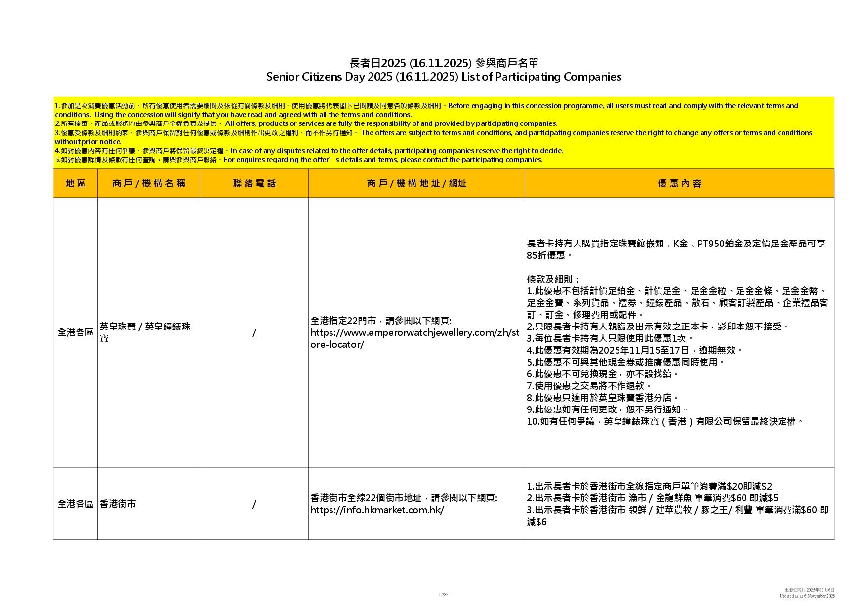 - 出示⾧者卡於香港街市全線指定商戶單筆消費滿$20即減$2