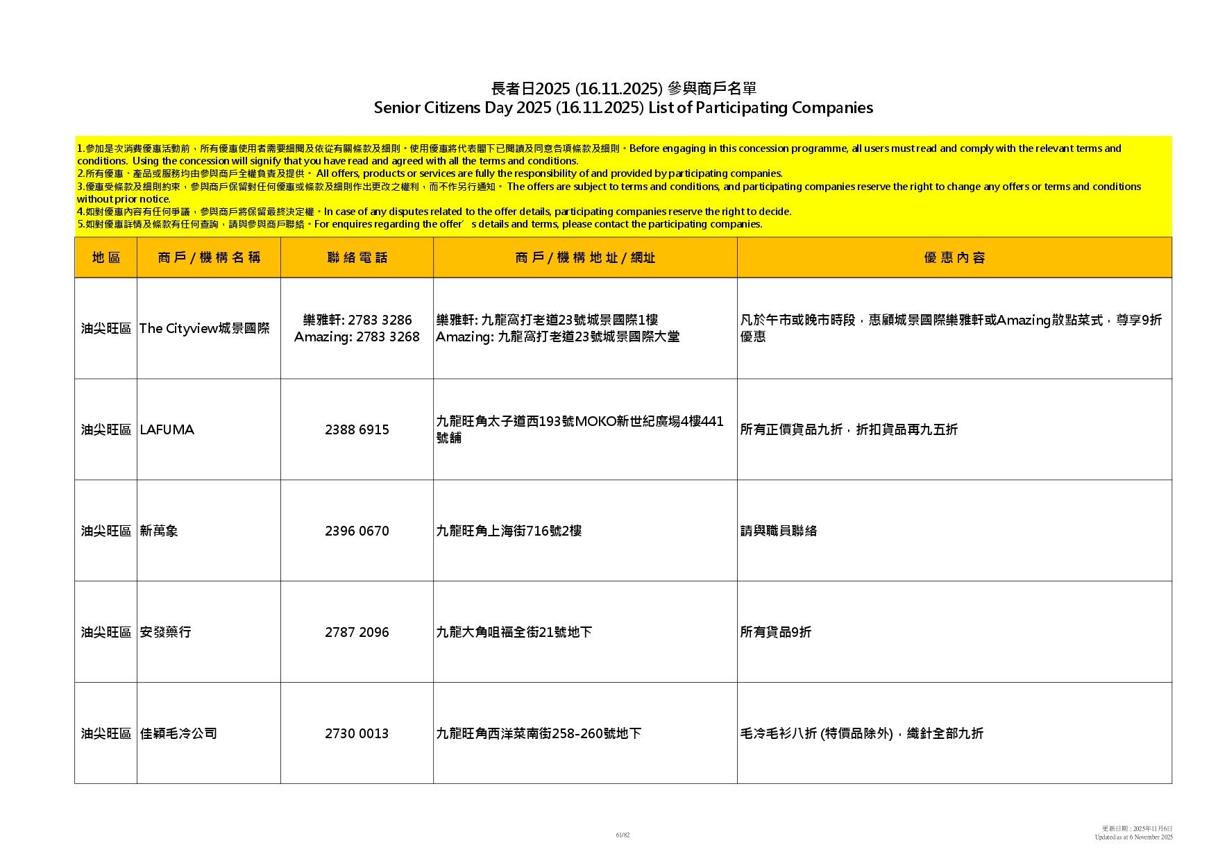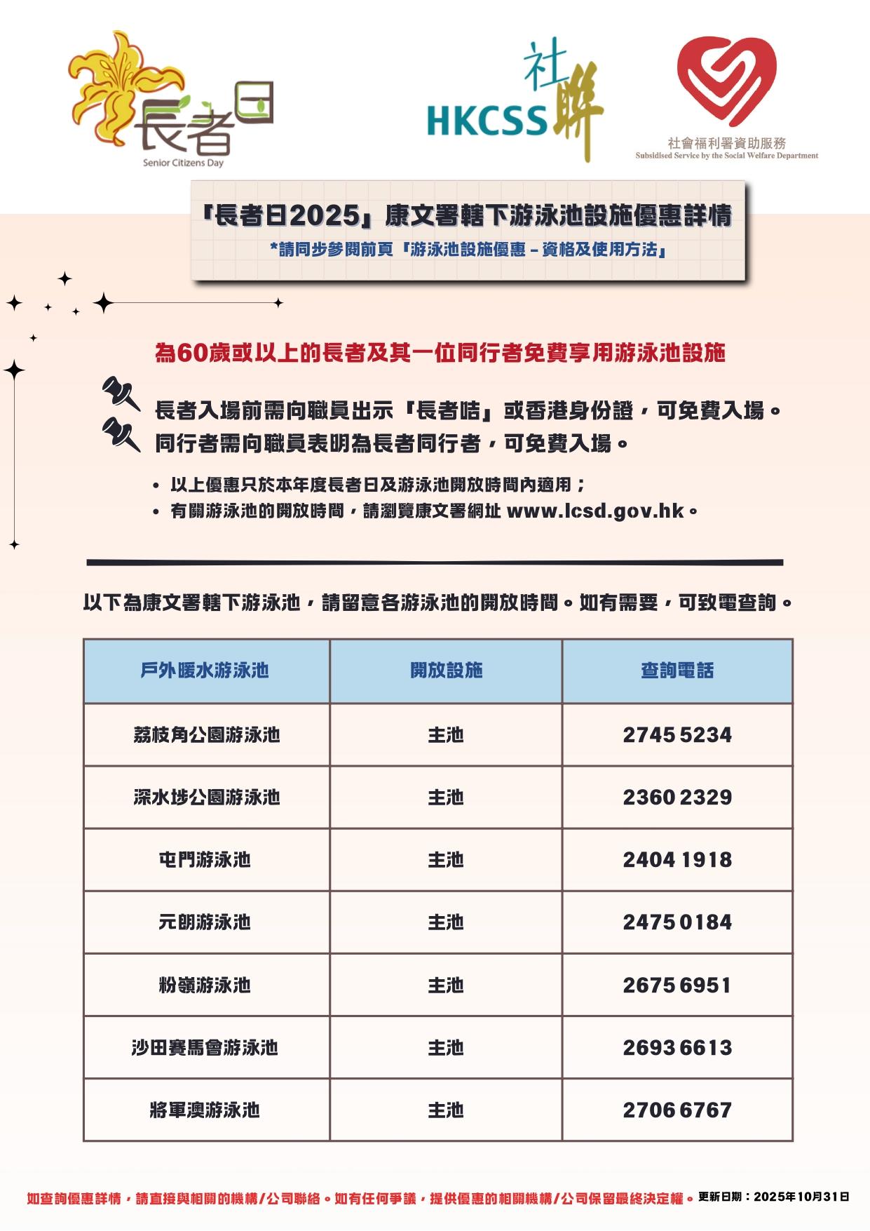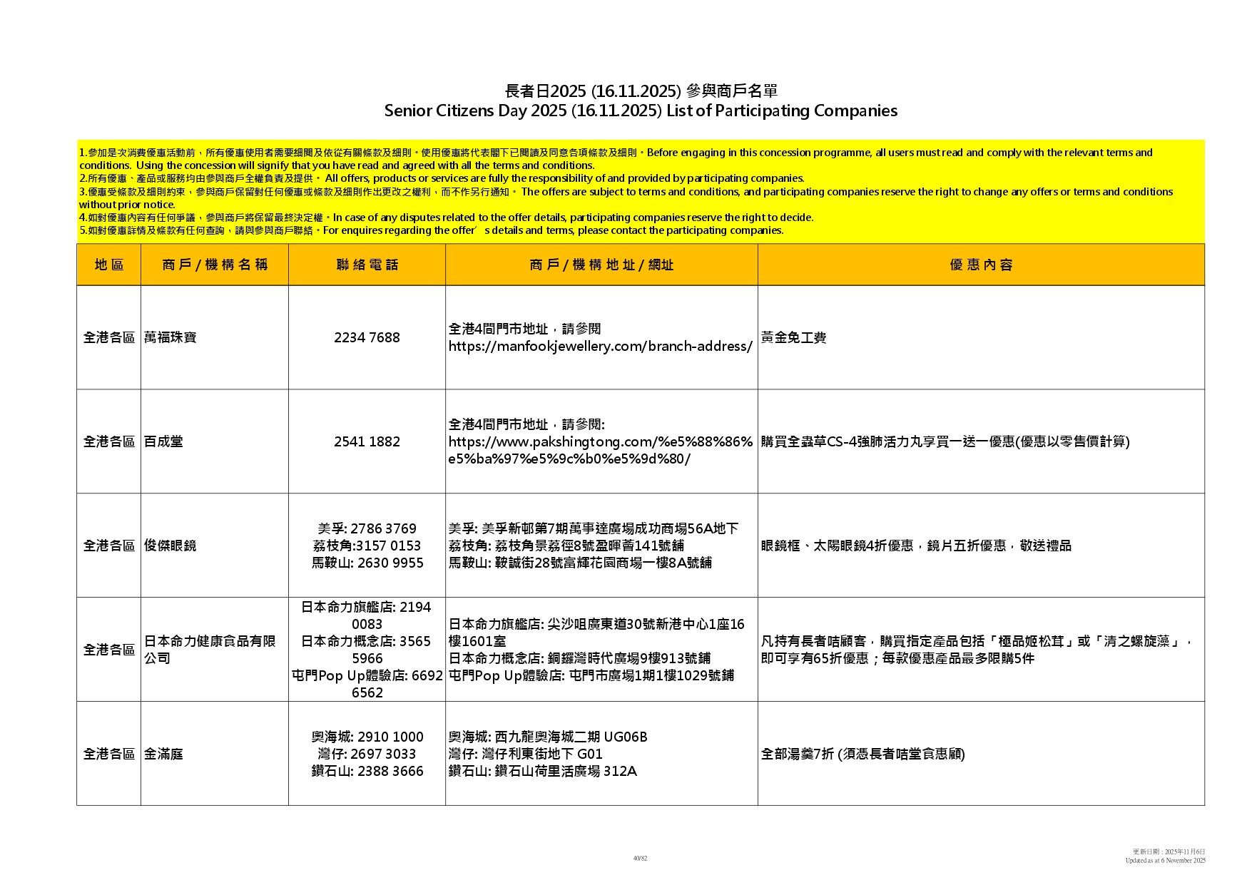 長者日2025於11月16日舉行,多項交通工具及景點免費入場,另外逾千個品牌包括食肆、零售及服務業,為各位老友記提供一系列獨家優惠!長者只需出示長者咭等證明,即可獲各種折扣,以下記者整合多個長者日著數優惠,即睇詳情!
