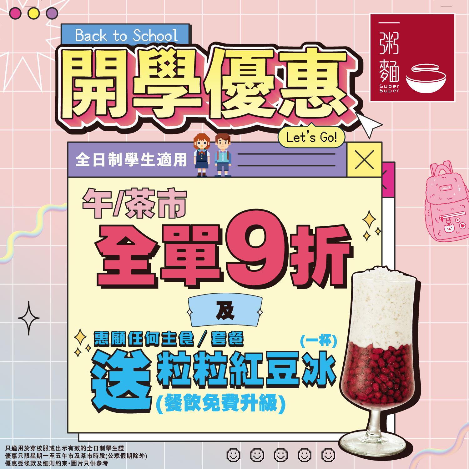 開學優惠|一粥麵學生9折優惠/免費升級紅豆冰