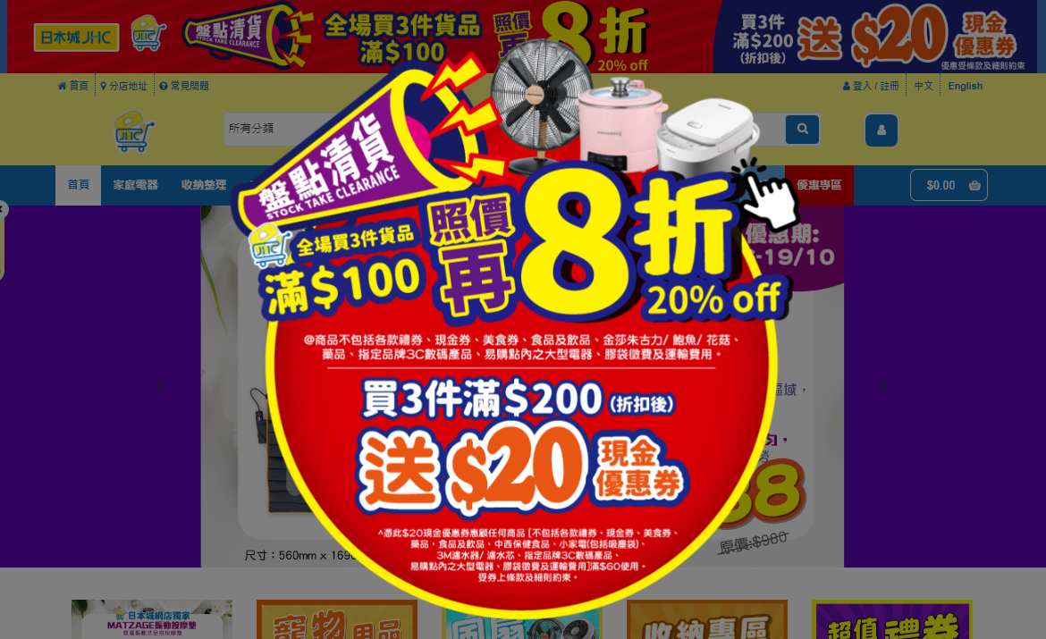 限時優惠|日本城3件貨品滿$100全單照價再8折+折扣後滿$200即送$20現金優惠券