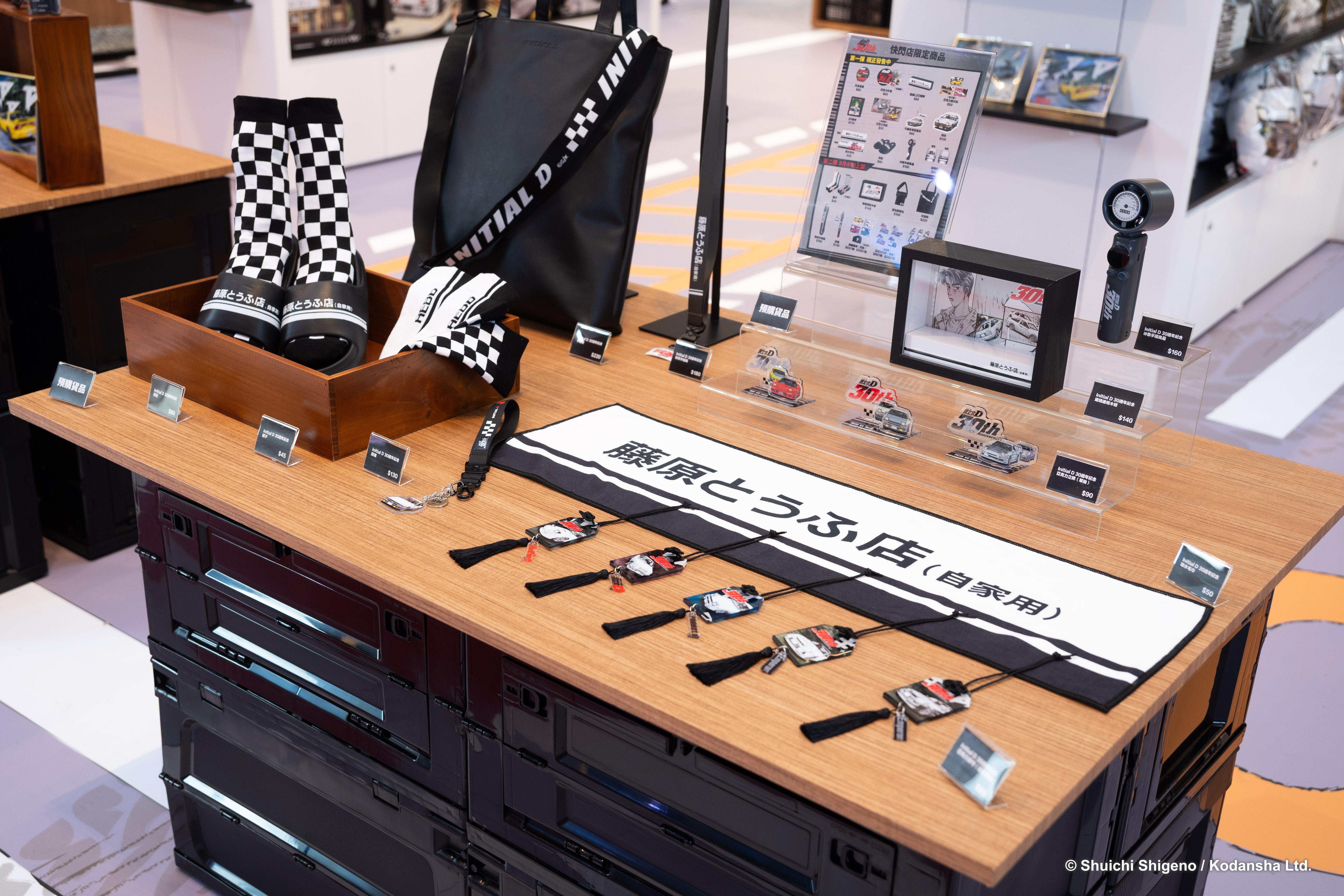 今次頭文字D期間限定快閃店精心設置多個拍照打卡區,讓粉絲置身《頭文字D》的世界。入口可見藤原拓海倚著愛驅AE86,各位粉絲可盡情與「秋名山車神」合照!另一邊更完美復刻藤原豆腐店鋪面,重溫漫畫中拓海凌晨送豆腐的經典場景。快閃店更設作品介紹展板及原畫複製品展示,讓新粉絲可以加深認識《頭文字D》,感受這部經典作品的魅力。
