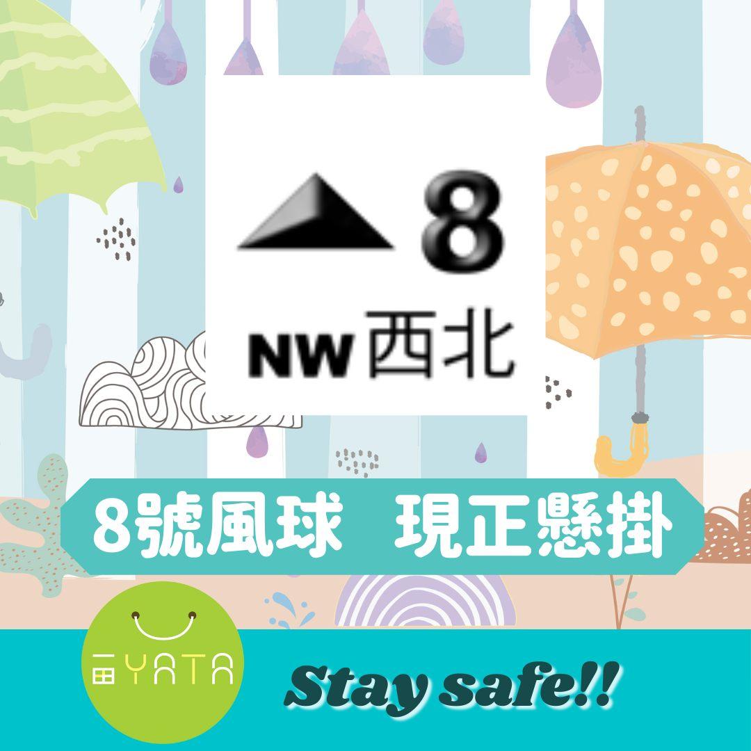 一田百貨全線超市於8號風球期間,將會按正常營業時間開店;全線百貨店百貨部門、KONBINI及特別展場會停止服務。如稍後改掛更高風球,將停止服務。