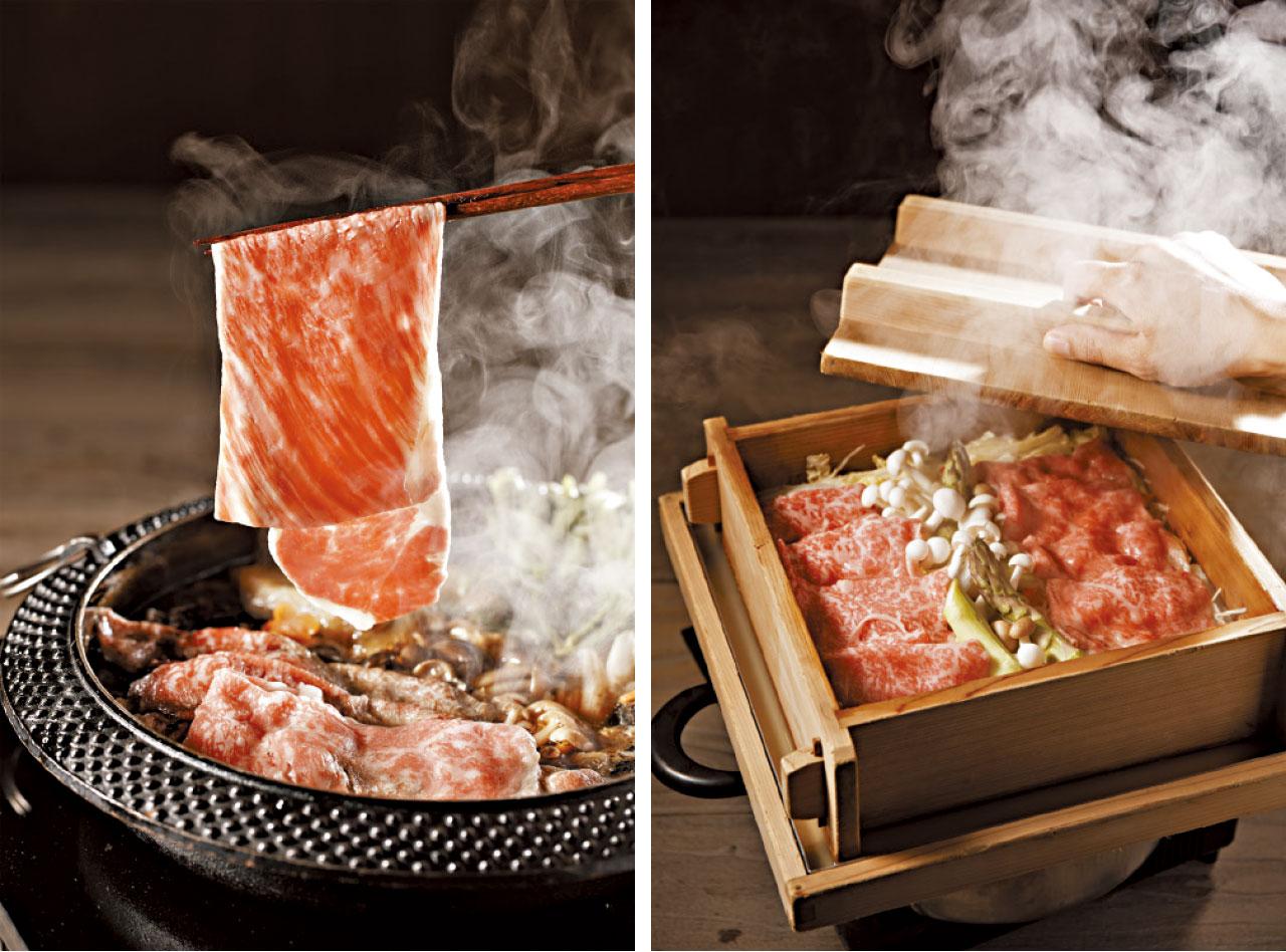 (左)壽喜燒套餐 ; (右)佐賀蒸籠料理套餐