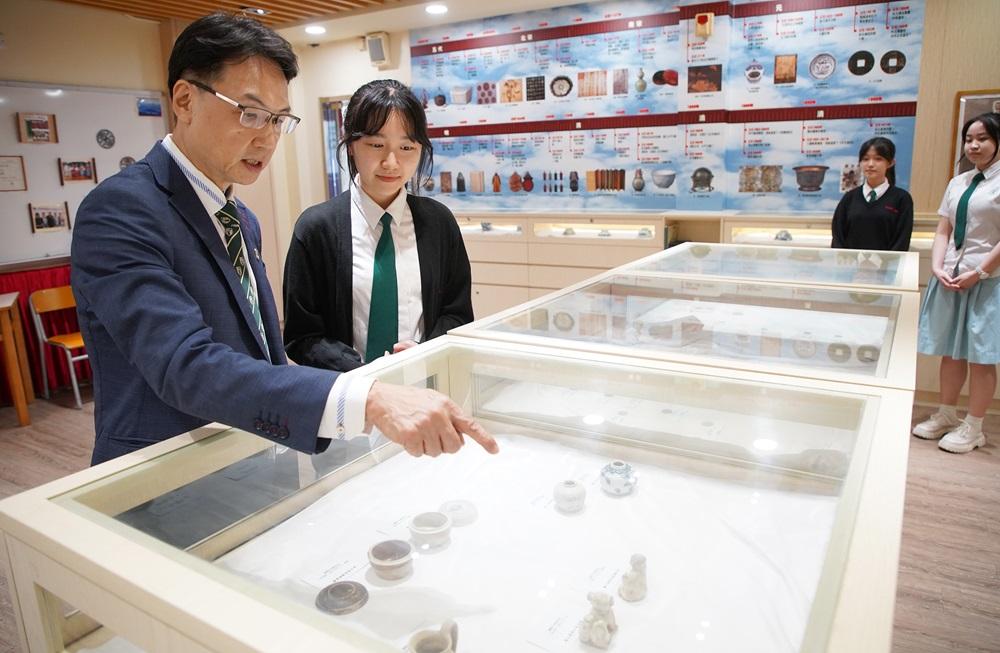 楊校長還稱,學校十分著重中華文化的傳承,課程結合仁、義、禮、智、信的「五常」概念,為學生日後立身處世作準備。該校曾邀得「沙士」抗疫英雄鍾尚志醫生到校分享,大談歷年個人閱讀與寫作心得。今年圖書館與中文科合辦作家講座,邀請《舖貓記》作者陳微主講;其著作以舖頭貓為題材,透過人、貓、地三者的微妙角力,培養學生的仁愛精神。承蒙校友李宗鴻的支持,該校於2022年設立全港首間中外文物館,為學生提供觀察歷史的平台,也促進學校之間的交流,推廣中華文化,增強學生的民族認同感。