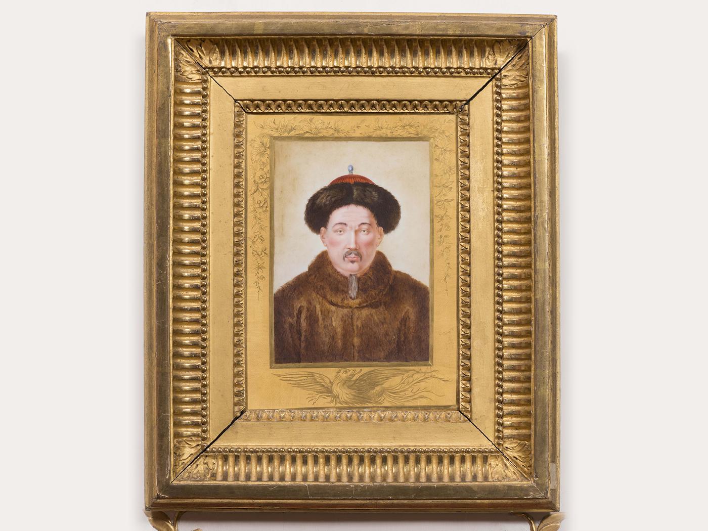乾隆帝瓷板像(1776年)的圖像基於意大利耶穌會士潘廷章(1733–1812年)在清宮所製的乾隆帝畫像。瓷板像由法國皇家塞弗爾瓷廠製作。路易十六(1774–1792年在位)於1776年獲得此瓷板像,並將其掛在凡爾賽宮書房内。據說他之後又收入一件相同的瓷板像,作為外交禮物贈予乾隆帝。