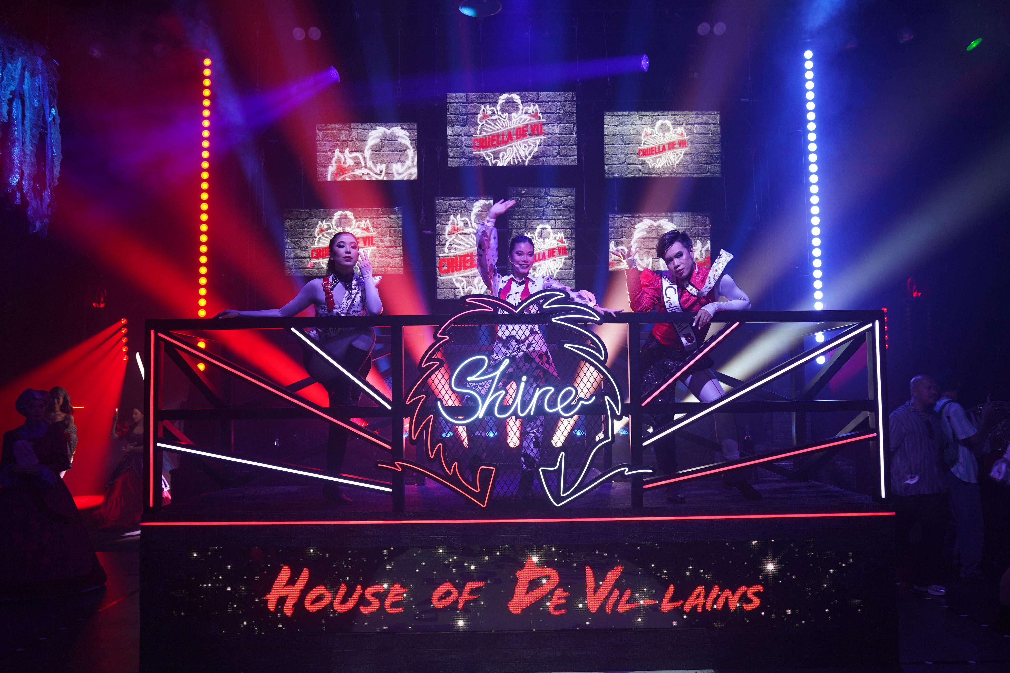 說起萬聖節,可能不少人會想起迪士尼一眾惡人——《時尚女魔頭》庫伊拉、《愛麗絲夢遊仙境》紅心皇后及《騎呢大帝》伊絲瑪,齊齊現身年度時尚盛會「惡人大宅舞會」。開show前,他們的惡人手下以時尚造型裝置新登場,觀眾可以近距離與紅心皇后的撲克牌士兵及伊絲瑪的高剛互動拍照。預熱後,觀眾就會進入正式表演場地,庫伊拉及紅心皇后便會登場演唱全新原創「惡」曲《House of De Vil-lains》及《Shine》,將氣氛推至高潮。