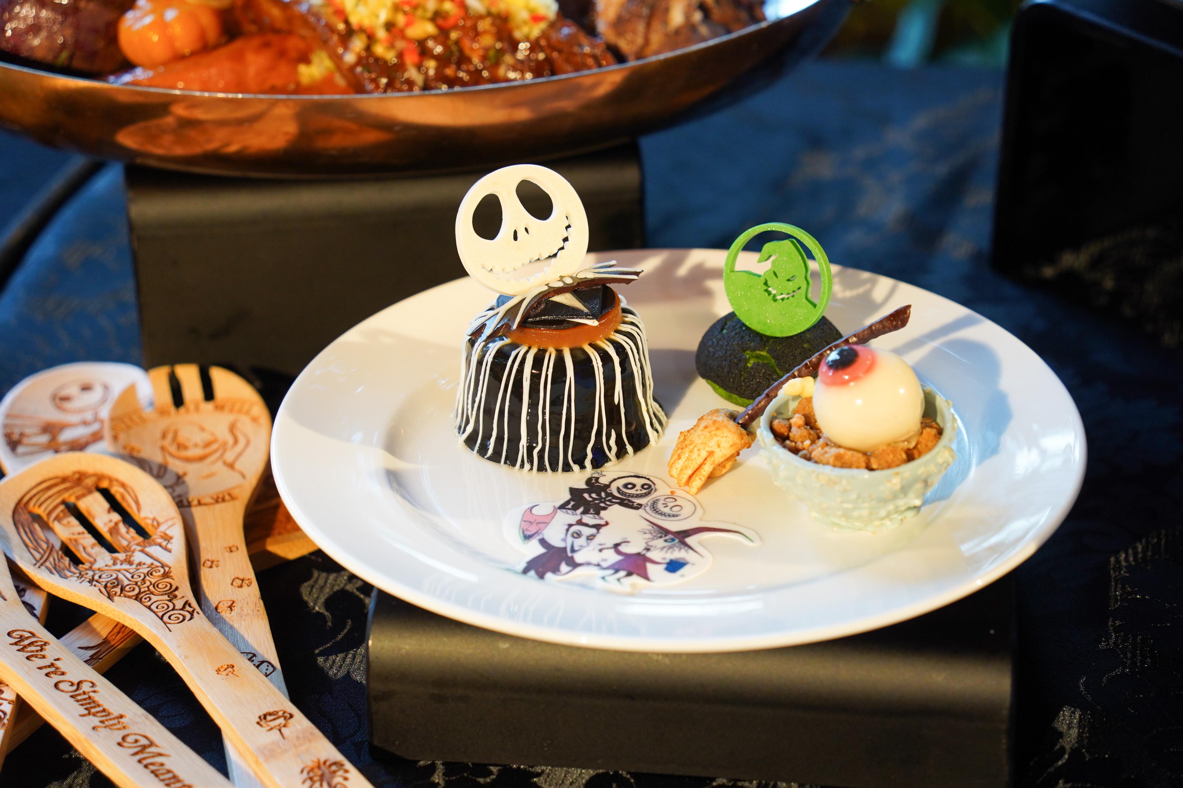 玩到咁上下,不妨到河景餐廳享受南瓜王阿Jack與怪誕城村民為各位惡人賓客準備的阿Jack怪誕大餐。正當享受無限添加的「瘋」盛主菜及迎賓飲品時,阿Jack、莎莉及Oogie Boogie會與大家近距離互動。當日怪誕城村民先於餐前與記者互動,氣氛活躍,最適合一眾E人。阿Jack、莎莉及Oogie Boogie登場時,怪誕城村民更加表現驚恐,紛紛躲在柱後,讓食客有沉浸式感受故事氣氛中。記者試食甜品泡芙覺得驚喜,酸酸甜甜味道就最適合夏天。