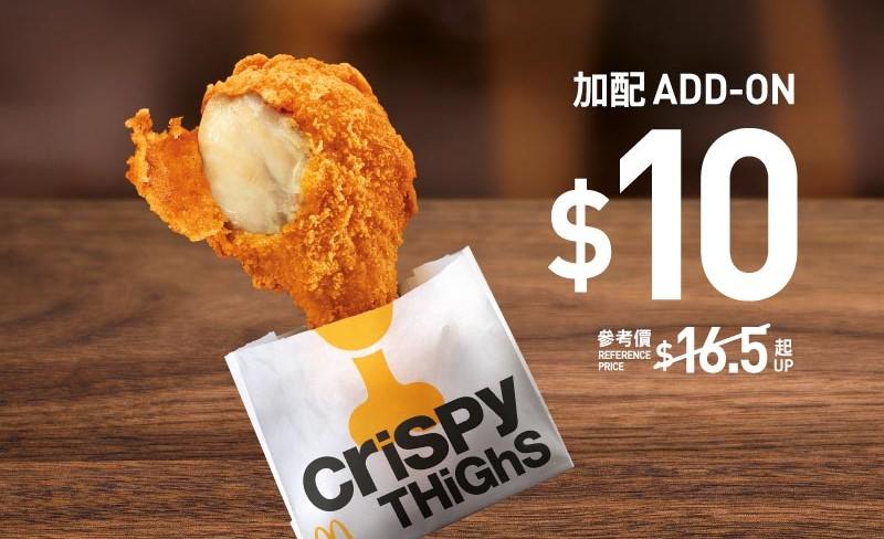 配合今次聯乘合作,麥當勞特別推出全新日式吉列雞腿飽,以日式脆炸方式烹調用上醬油、薑、昆布及鰹魚調味的特大*原塊雞腿肉,外脆內嫩,保持肉質鮮嫩多汁,並配上新鮮椰菜絲和日式烘烤白芝麻醬,口感豐富滿足!由11月14日起,顧客到餐廳直接選購或透過麥當勞App優惠券,可以$39優惠價購買日式吉列雞腿飽套餐。