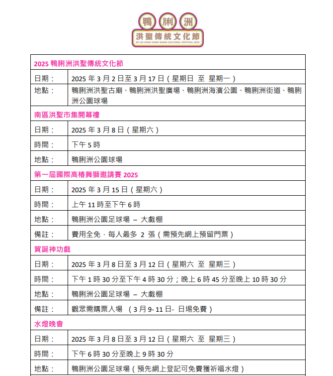 2025鴨脷洲洪聖傳統文化節