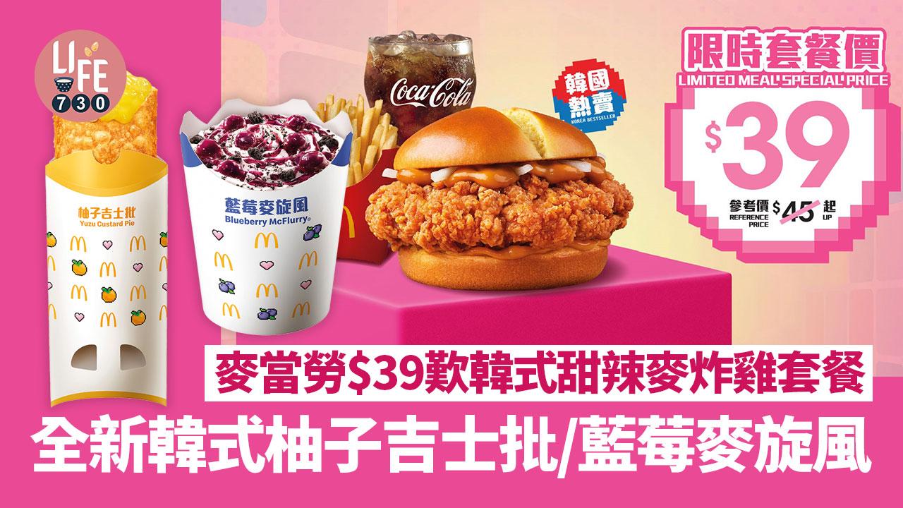麥當勞超人氣韓風美食脆爆雞腿飽及韓式甜辣麥炸雞將於將於明天(8月15日)載譽回歸,並為大家帶來更多韓式新品,包括韓式柚子吉士批、藍莓麥旋風及柚子乳酸味特飲,脆爆雞腿飽及韓式甜辣麥炸雞限時套餐價只需$39,大家千萬別錯過!