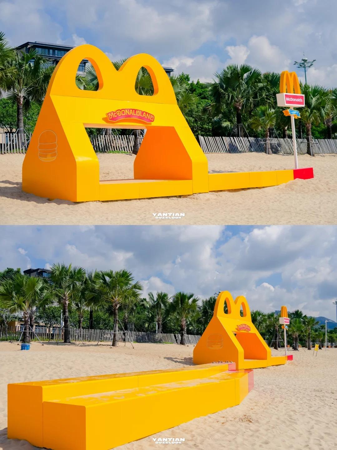 大梅沙海濱公園化身成麥麥沙灘!海灘上擺滿各種麥麥裝置,有巨型薯條長椅和開心樂園餐打卡區,將美食巨大化!可到這裡附近的麥當勞,出示護照即可蓋章。