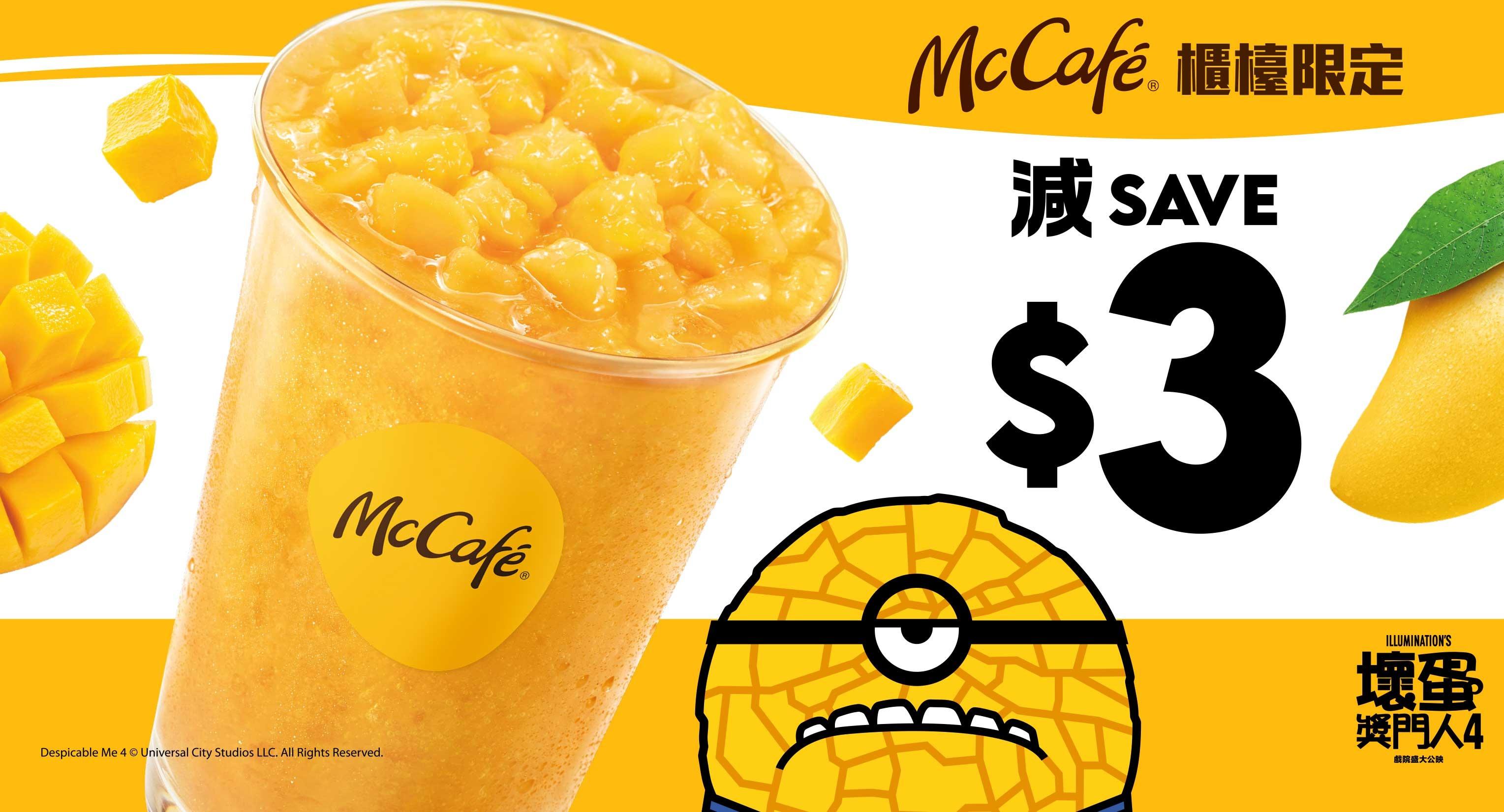 迷你兵團特別喜愛水果香甜滋味,McCafé櫃檯同日推出夏日特飲Double芒果冰雪,特飲選用香甜呂宋芒和多汁鮮嫩的象牙芒,糅合兩種不同風味的芳香甘甜,雙重芒果滋味,啖啖消暑透心涼。