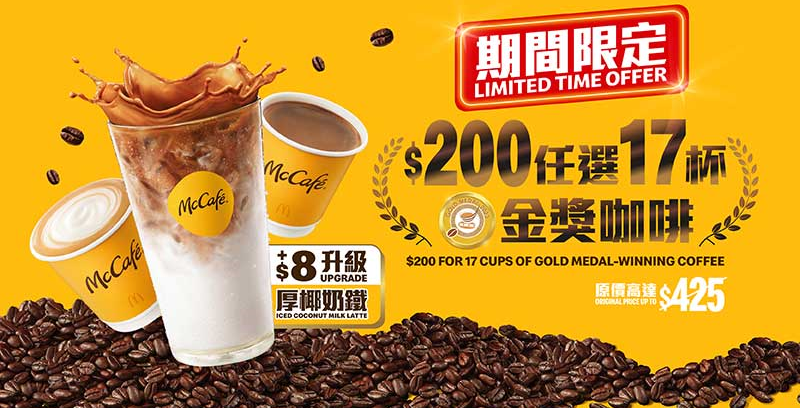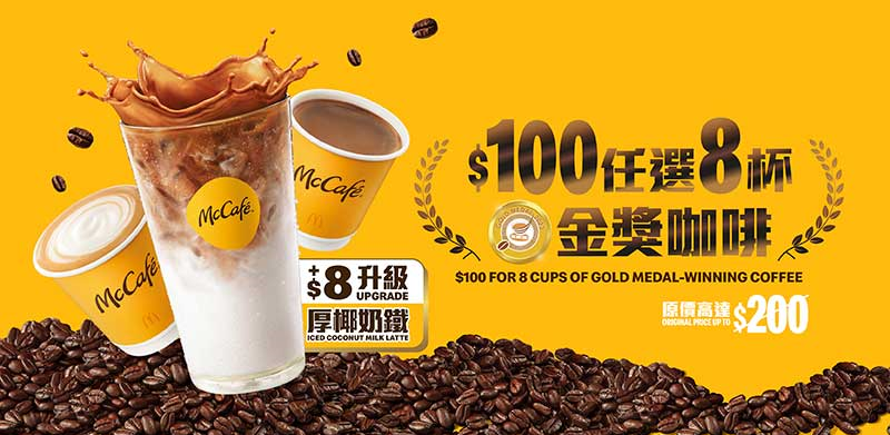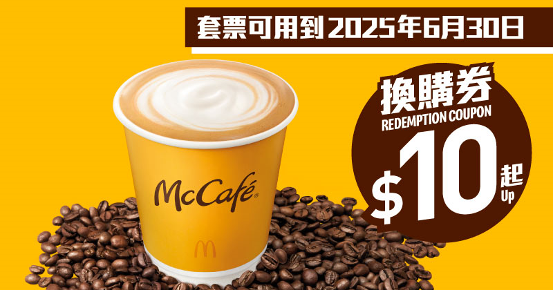 另外, McCafe即日起推出新一輪咖啡套票優惠,$100可任選8杯指定咖啡,低至$12.5即可嘆到香濃金牌咖啡,非常抵飲!