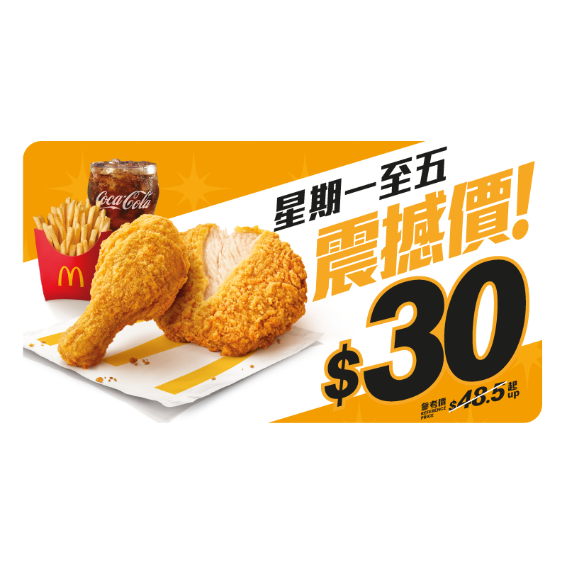 麥當勞$30優惠最後一彈!$30麥炸雞2件/板燒雞腿飽/雙層豬柳蛋漢堡套餐