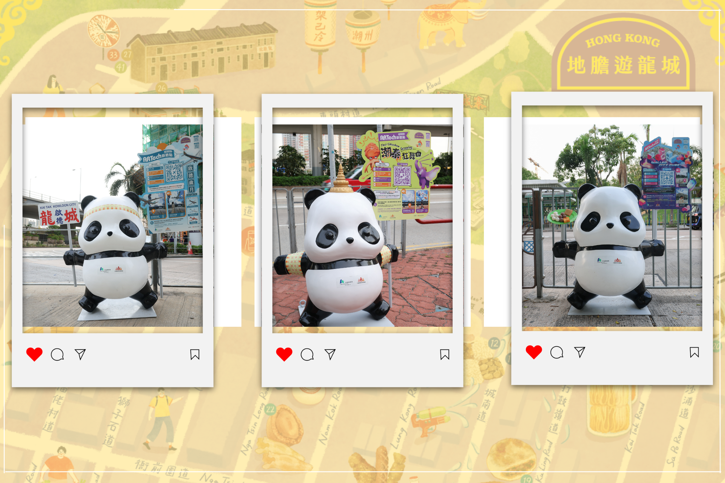三個ARTech新景點豎立了可愛的熊貓雕塑,展示活動內容和AR的啟動方法。遊人毋需下載應用程式,只需在現場用手機或行動裝置掃描啟動二維碼,便能在裝置上的網頁瀏覽器「參觀」景點,操作簡便,可即時輕鬆展開體驗。