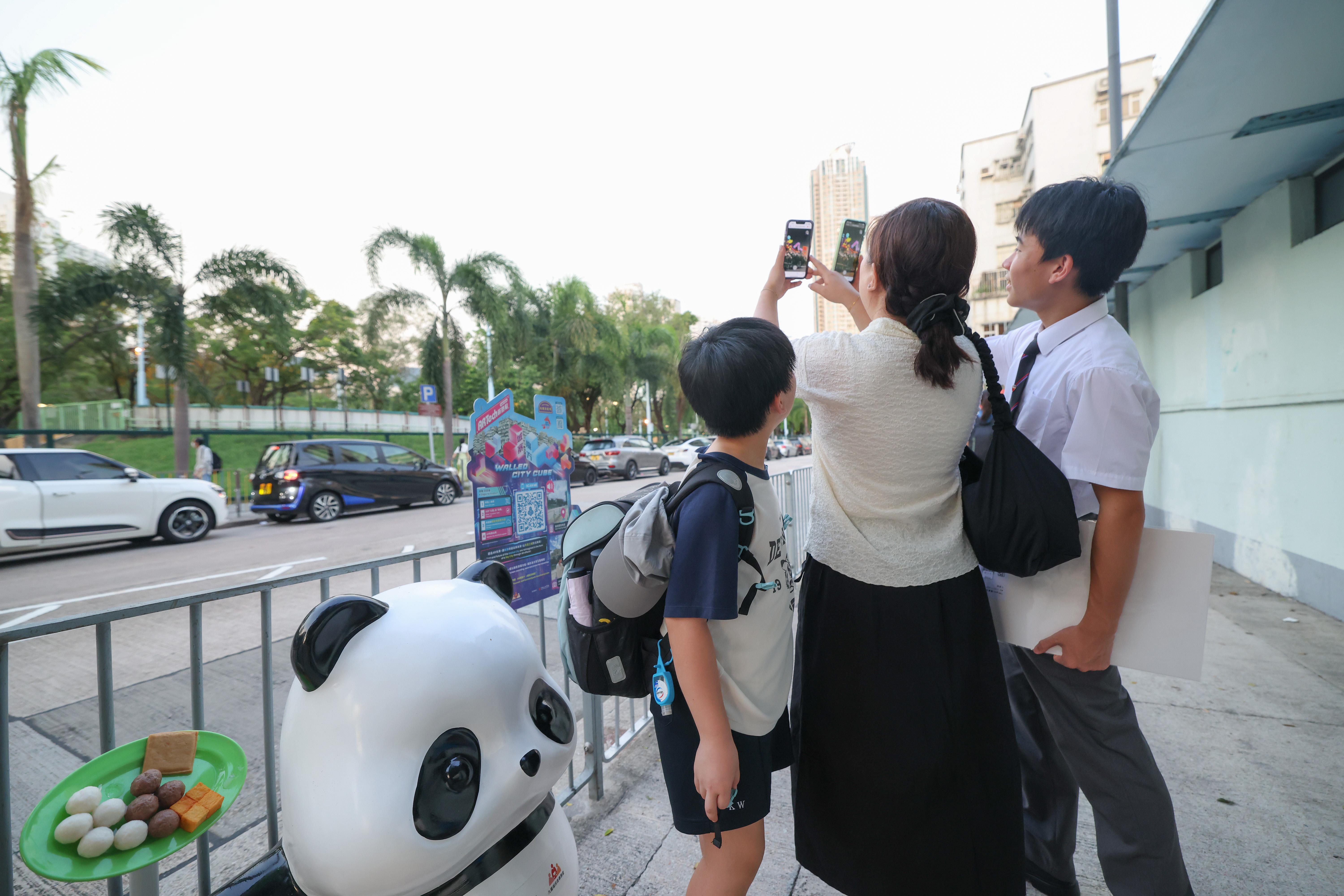 不少經過的途人被可愛的熊貓雕塑所吸引,即時掏出手機掃描二維碼,與家人及朋友體驗ARTech新景點。