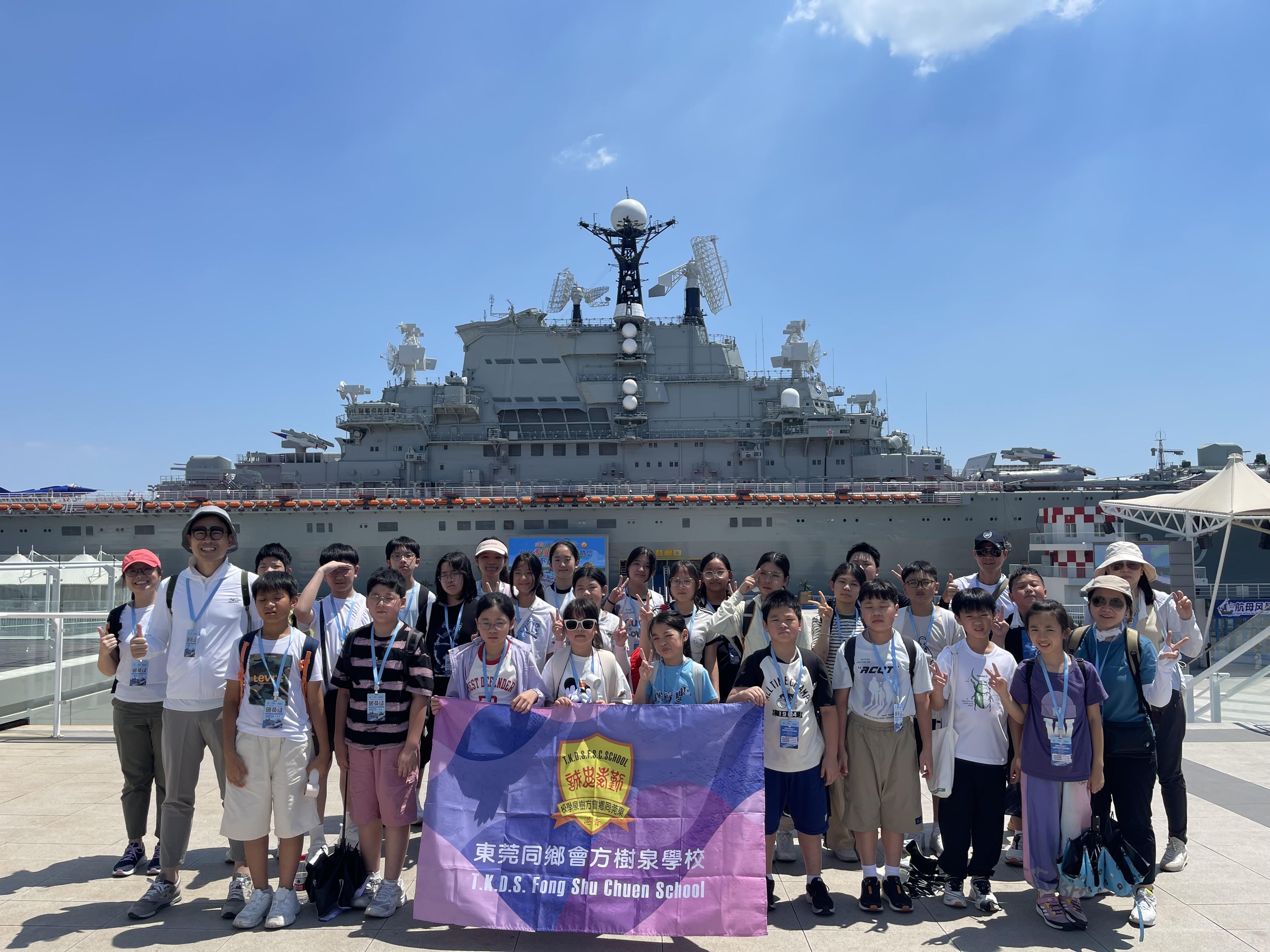 天津泰達航母主題公園作為本次遊學團的重點核心,為師生帶來前所未有的國防教育體驗。香港學生很少機會能夠親身走進航空母艦,在亞洲STEAM教育協會及小小科學超人團隊的安排下,今團師生一起登上基輔號。這艘全長273米、排水量超過四萬噸的蘇聯時代巨艦,令初次登上甲板的同學們驚嘆不已:「哇!站上去真的很震撼,我們變得好渺小,這裡大到仿佛走一天也走不完。」我看著他們仰望著一比一復刻的導彈發射器、反艦導彈和艦載火炮,不斷按下快門,彷彿置身於一座鋼鐵迷宮。