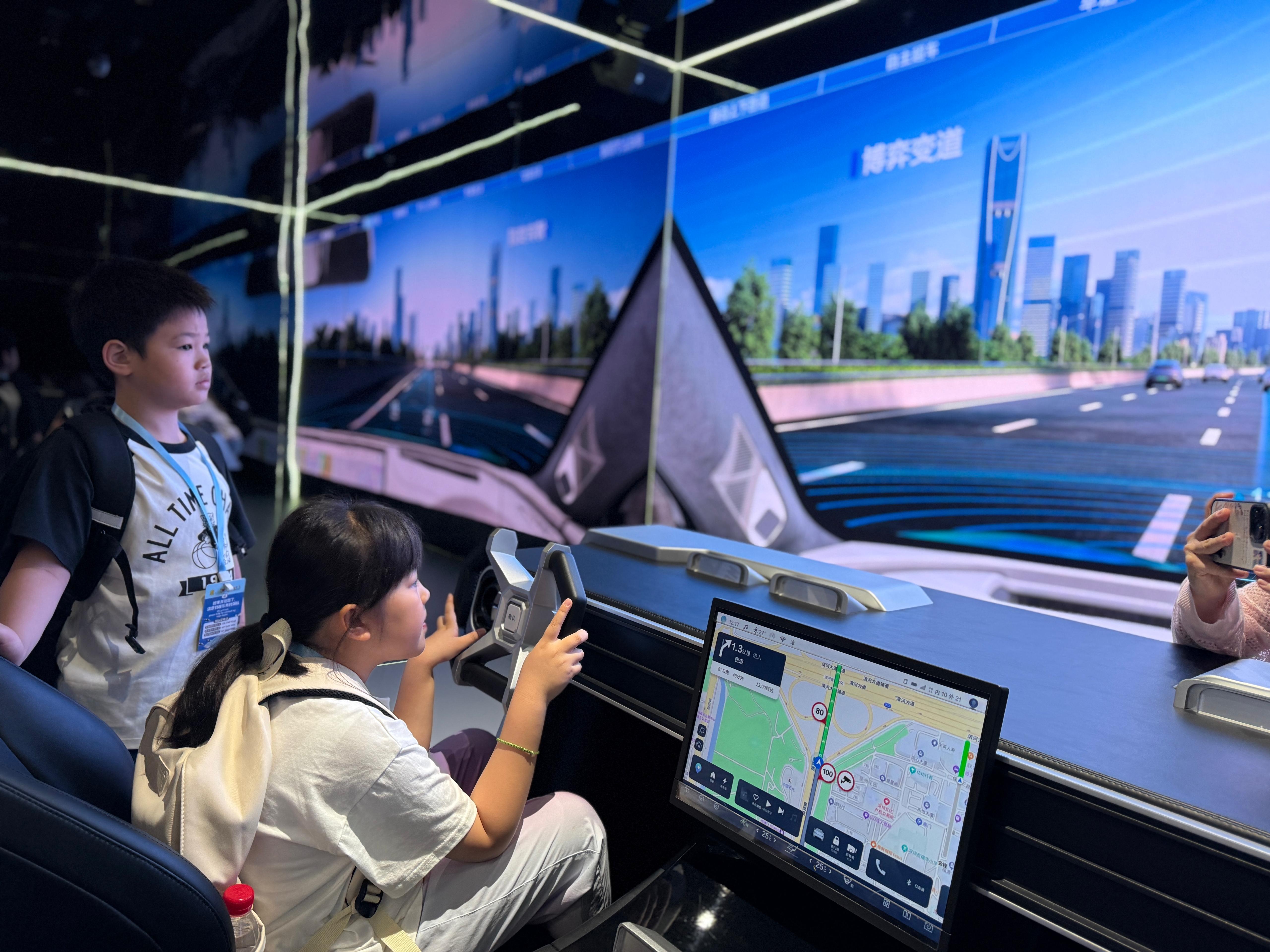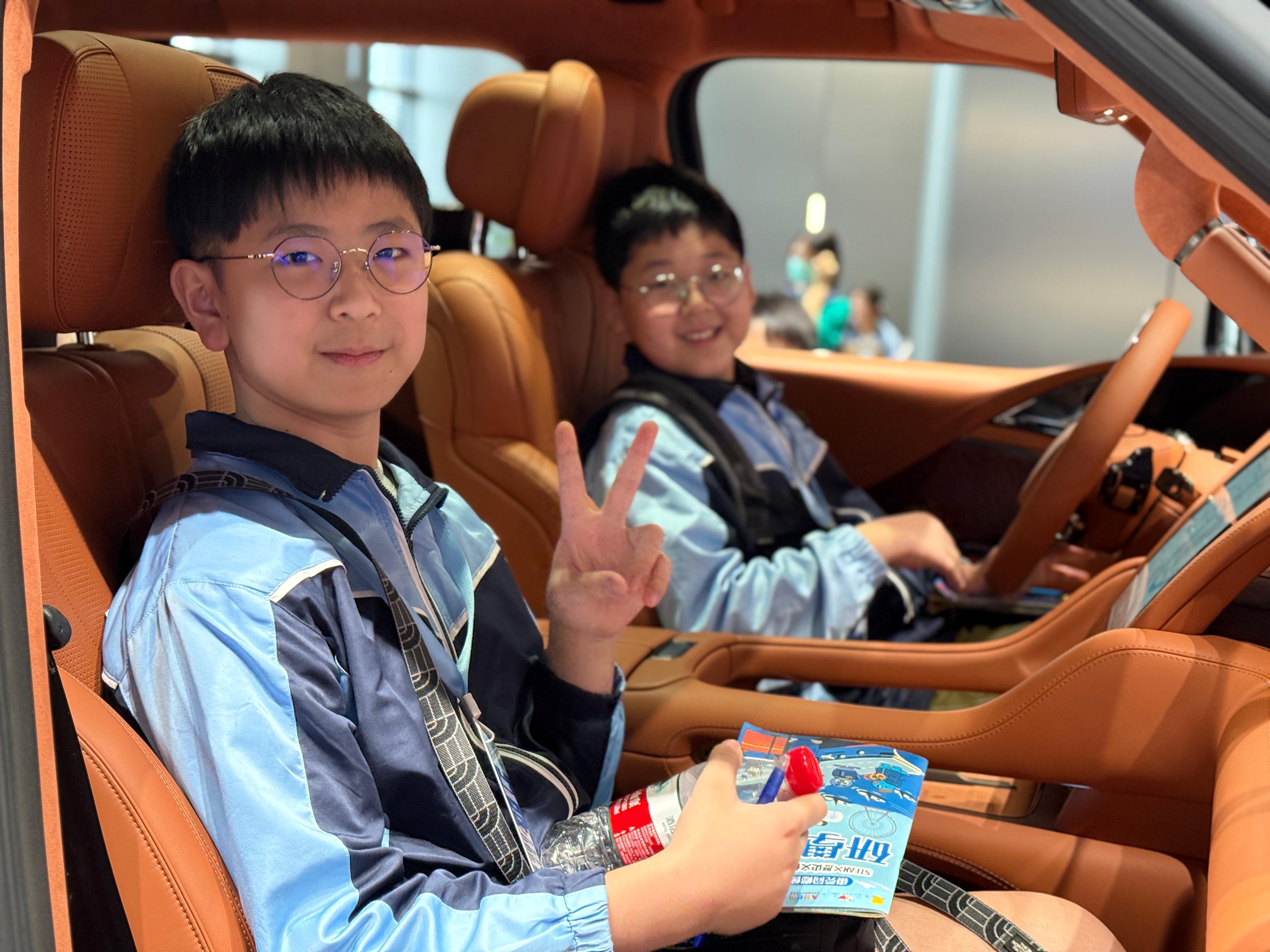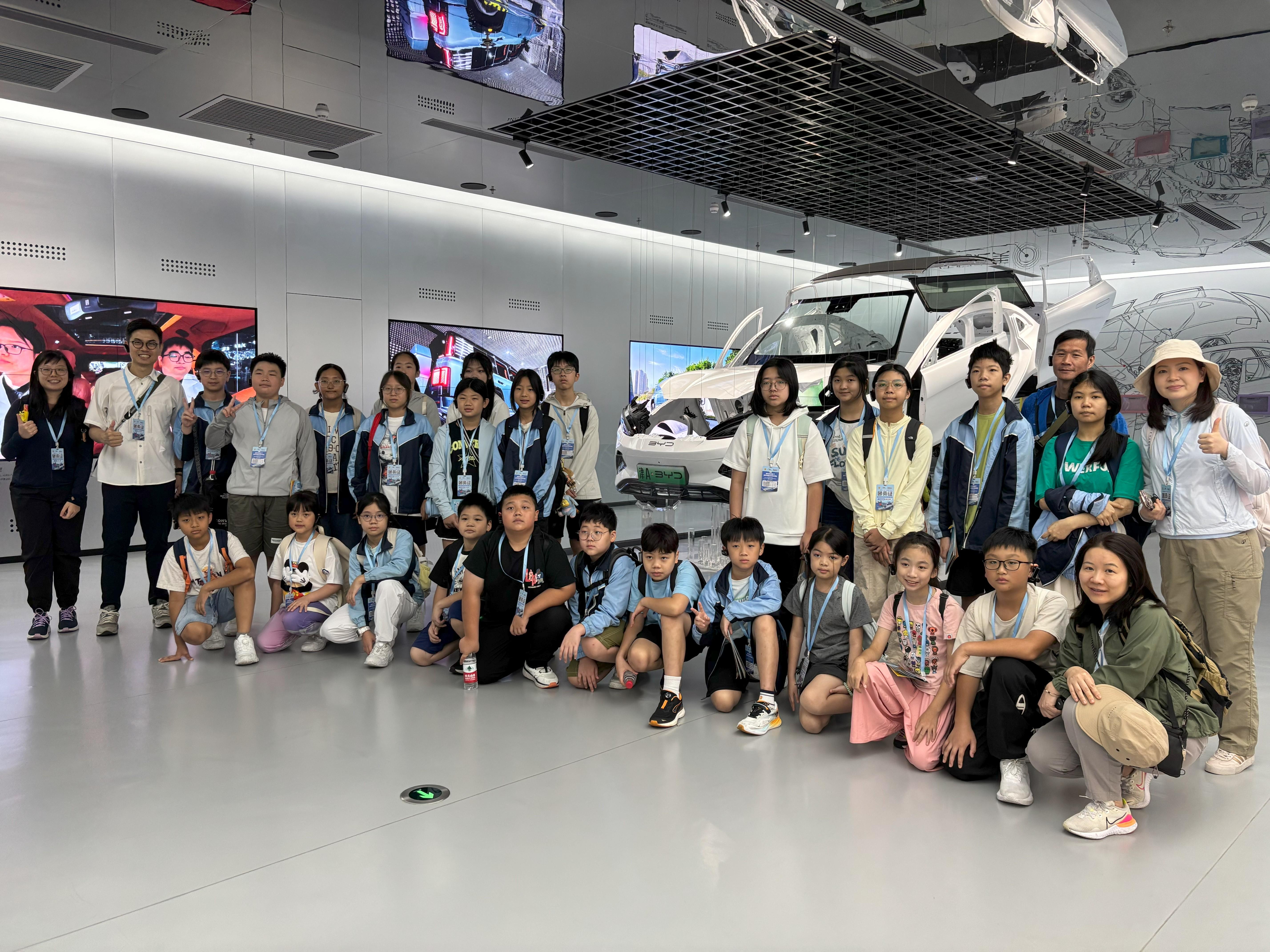 轉戰比亞迪.迪空間,學生們瞬間從歷史現場跳進未來世界。作為全球新能源汽車的領軍企業,比亞迪憑藉超過三萬項專利技術,展現出中國尖端產業的實力。導賞向同學們深入講解了三大技術特色:首先是領先的專利佈局,覆蓋電池、電機、電控等核心領域;其次是全產業鏈新能源汽車解決方案,從純電動到混合動力,展現了綠色出行的大格局;最後是智慧駕駛與AI技術的深度融合,同學們通過實例了解到如何通過人工智能優化能源管理和自動駕駛決策。問到同學們最欣賞的部分,有同學回應:「比亞迪的仰望U8越野車真的很厲害!除了用作越野用途,還能夠涉水,基本上可以當成一艘小船。汽車竟然可以在水面上前進,可以說是汽車工程的一大進步。」