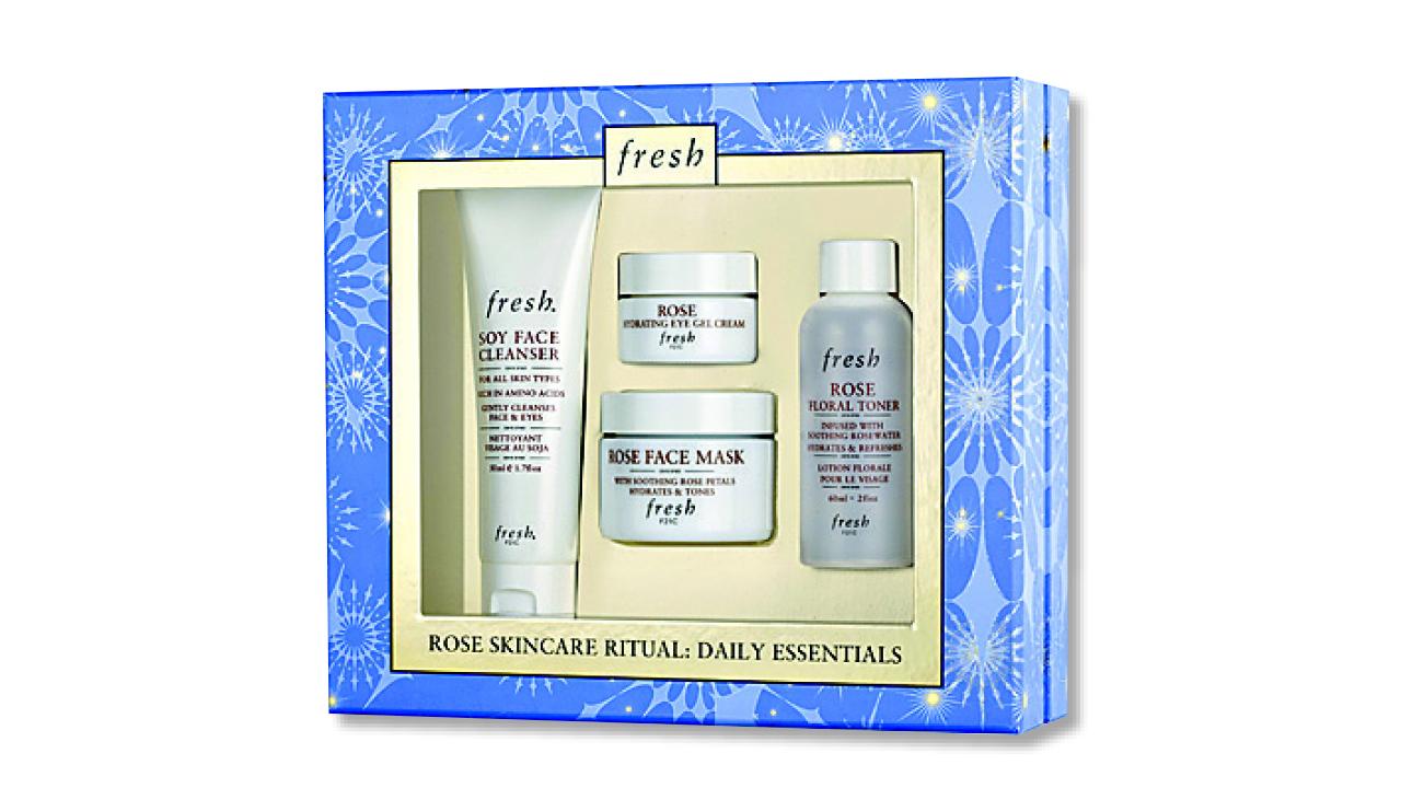 FRESH 玫瑰保濕體驗套裝 $580 極致發揮玫瑰護膚功效,提供每日必需的潔面、爽膚和補濕產品。(g、2113 8106) 大豆卸妝潔面乳(50ml)、玫瑰保濕面膜(30ml)、噴霧(60ml)及水凝眼霜 (15ml)