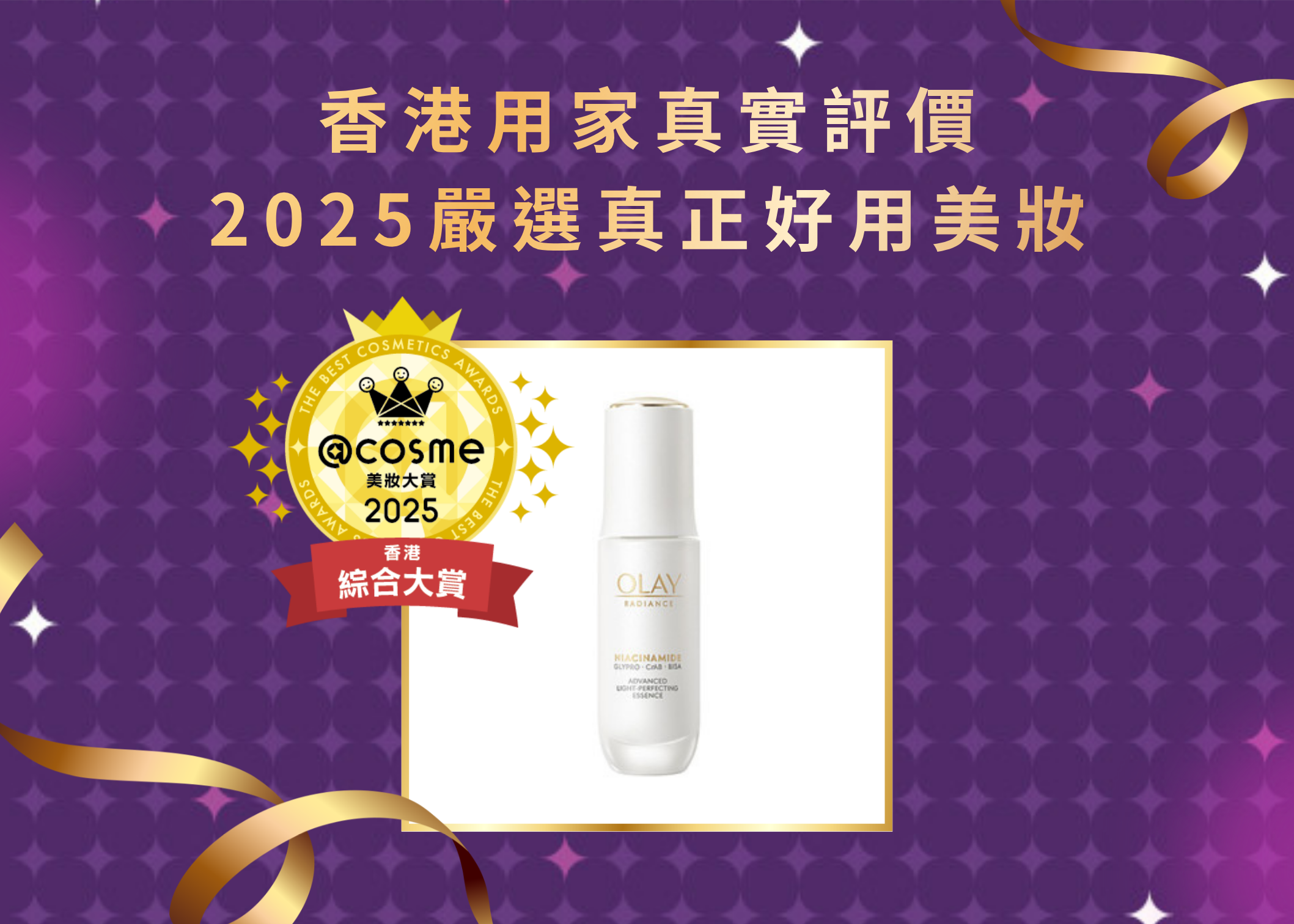 「@cosme香港美妝大賞」綜合賞是不分部門的10強榜單,即最受到香港消費者所推崇的美妝產品,由OLAY 水光小白瓶奪得年度Best of the Best「綜合大賞」第一名。這款美白護膚精華憑藉其有效締造水潤透亮肌,不系用家用後大讚精華的保濕力與提亮去黃功效。