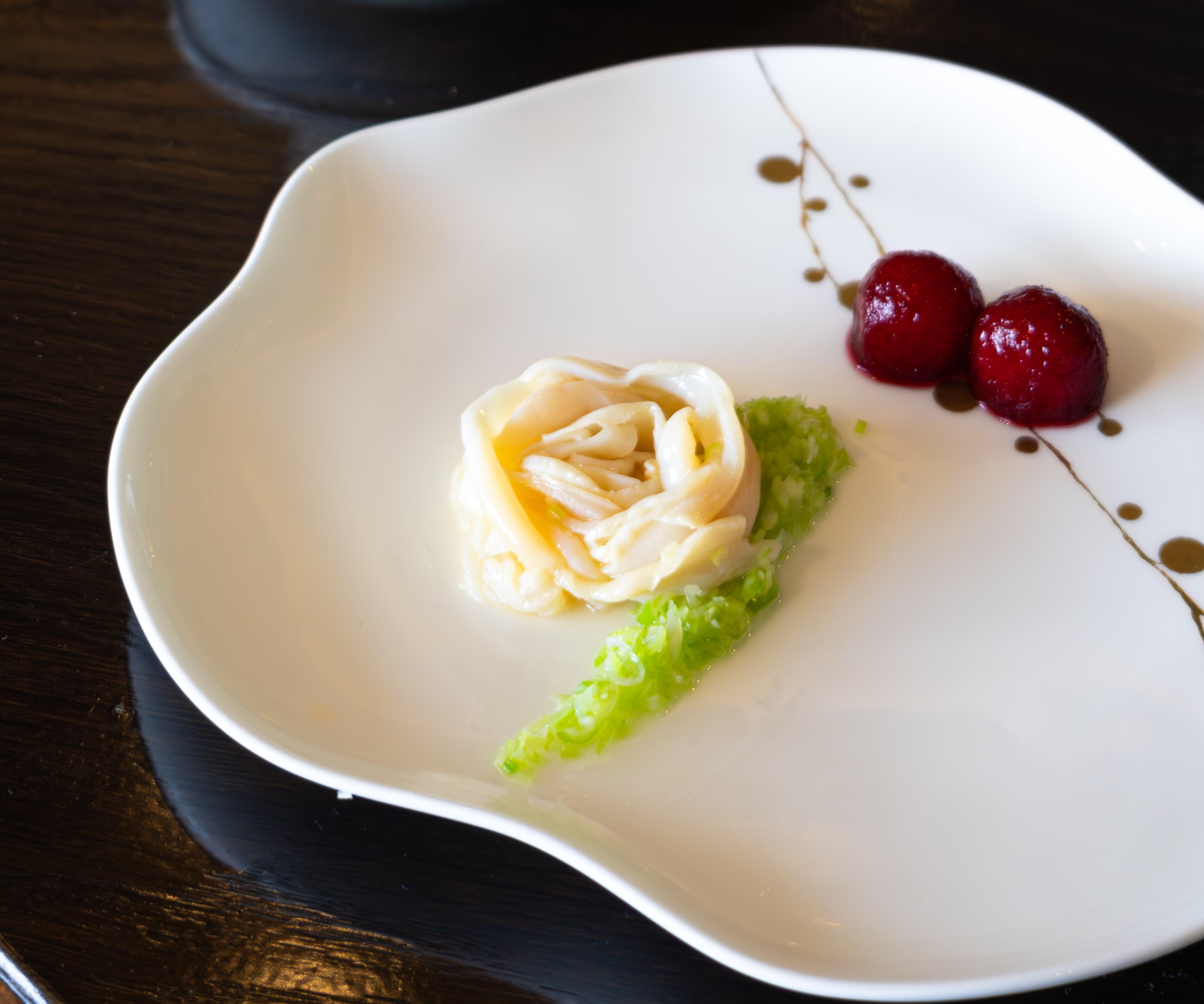 由即日起至11月30日期間,萬豪旅享家特別推出「萬味奇遇.港味回憶」限時嘗味菜單,結合中菜多變的食材和烹調手法,為客人帶來一系列風味獨特的精緻菜式。首先由香港東涌世茂喜來登酒店的中菜⾏政總廚鍾志強師傅,炮製三款風味頭盤:玉葡萄、蔥油蟶子及蜜餞西班牙黑毛豬叉燒。酸香開胃的玉葡萄外型別緻,為紅菜頭及充滿果香的雜莓醃製的冬瓜小圓球。蔥油蟶子用上秘製蔥油配鮮爽蟶子皇,令鮮味更突出。蜜餞西班牙黑毛豬叉燒則用西班牙上等黑毛豬梅頭肉,肉質軟嫩帶淡淡焦香。